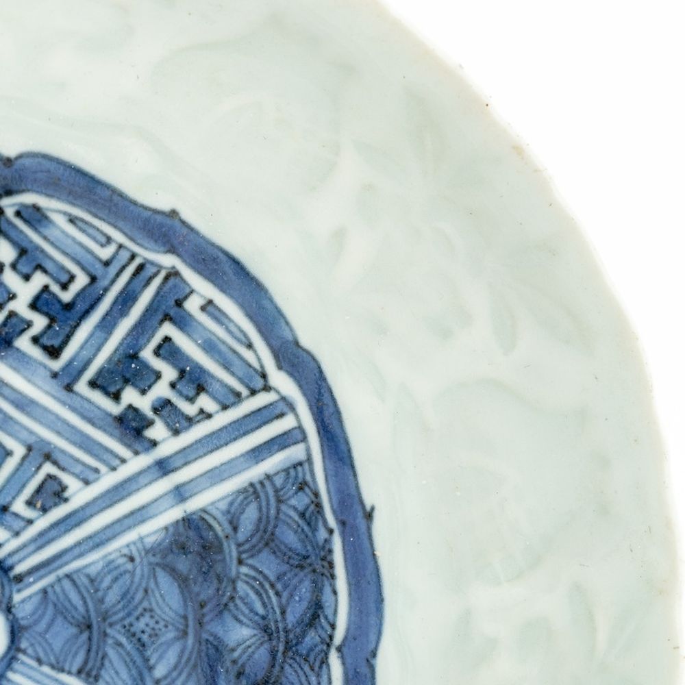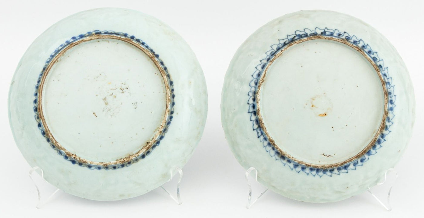 Chinese Blue & White Pale Celadon Dishes, Pair