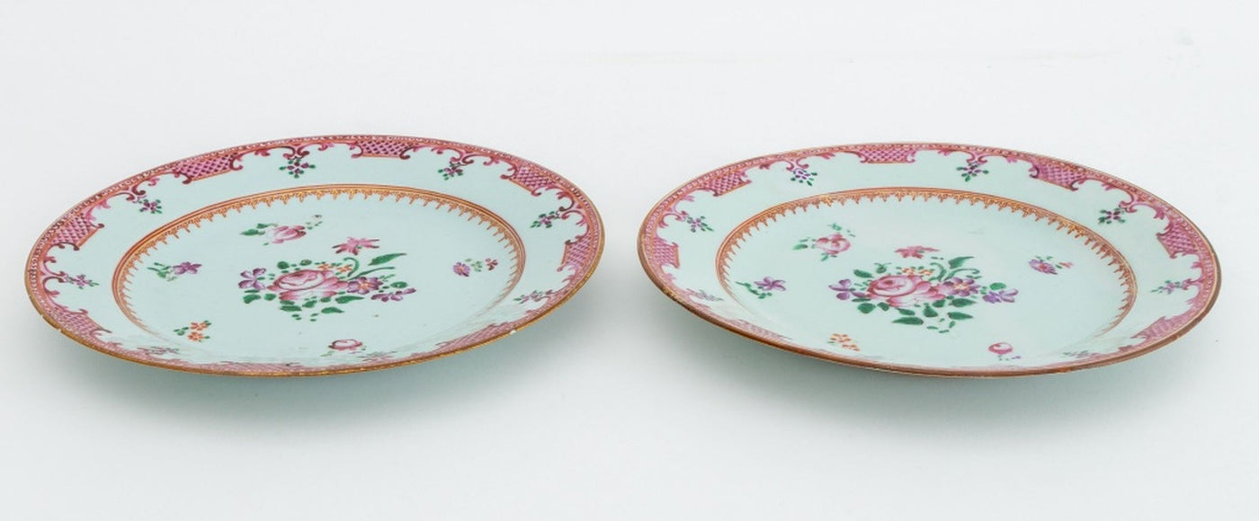 Chinese Export Famille Rose Porcelain Plates, Pair