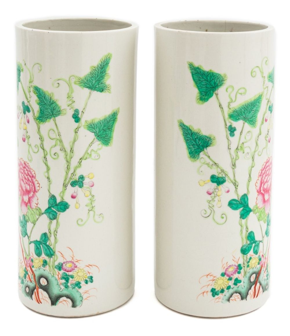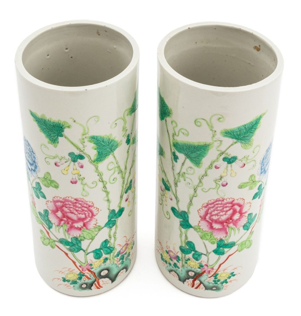 Chinese Famille Rose Porcelain Hat Stands, Pair