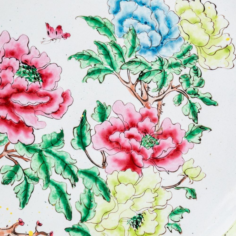 Chinese Floral Motif Enameled Plates, Pair