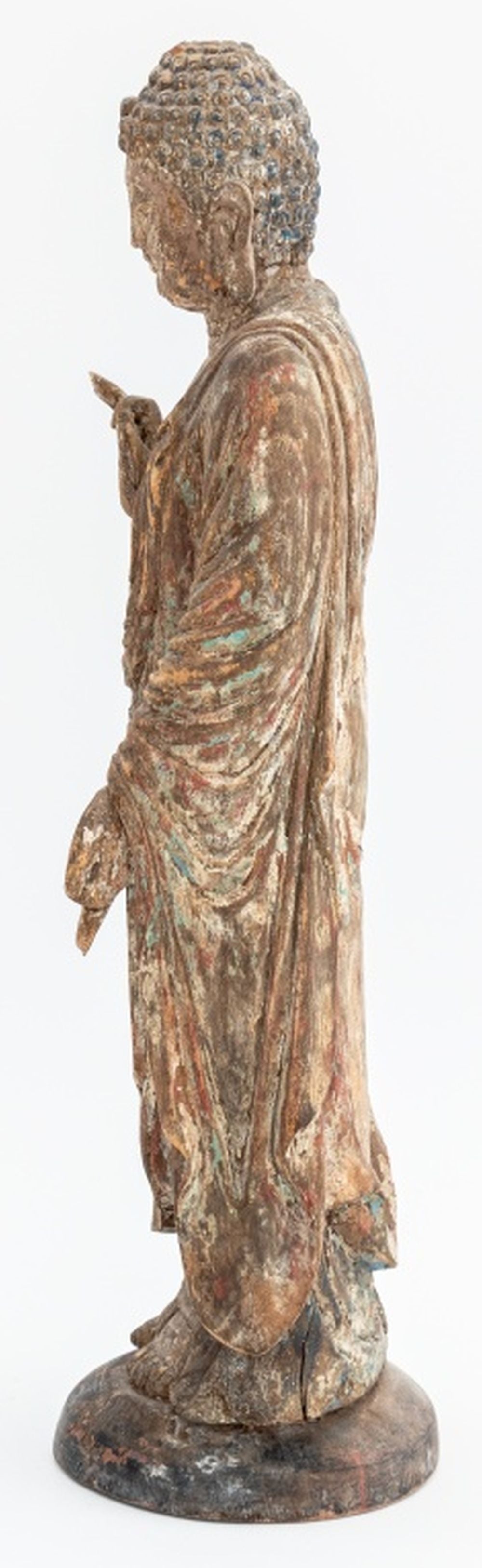Chinese Polychrome Painted & Carved Wood Buddha