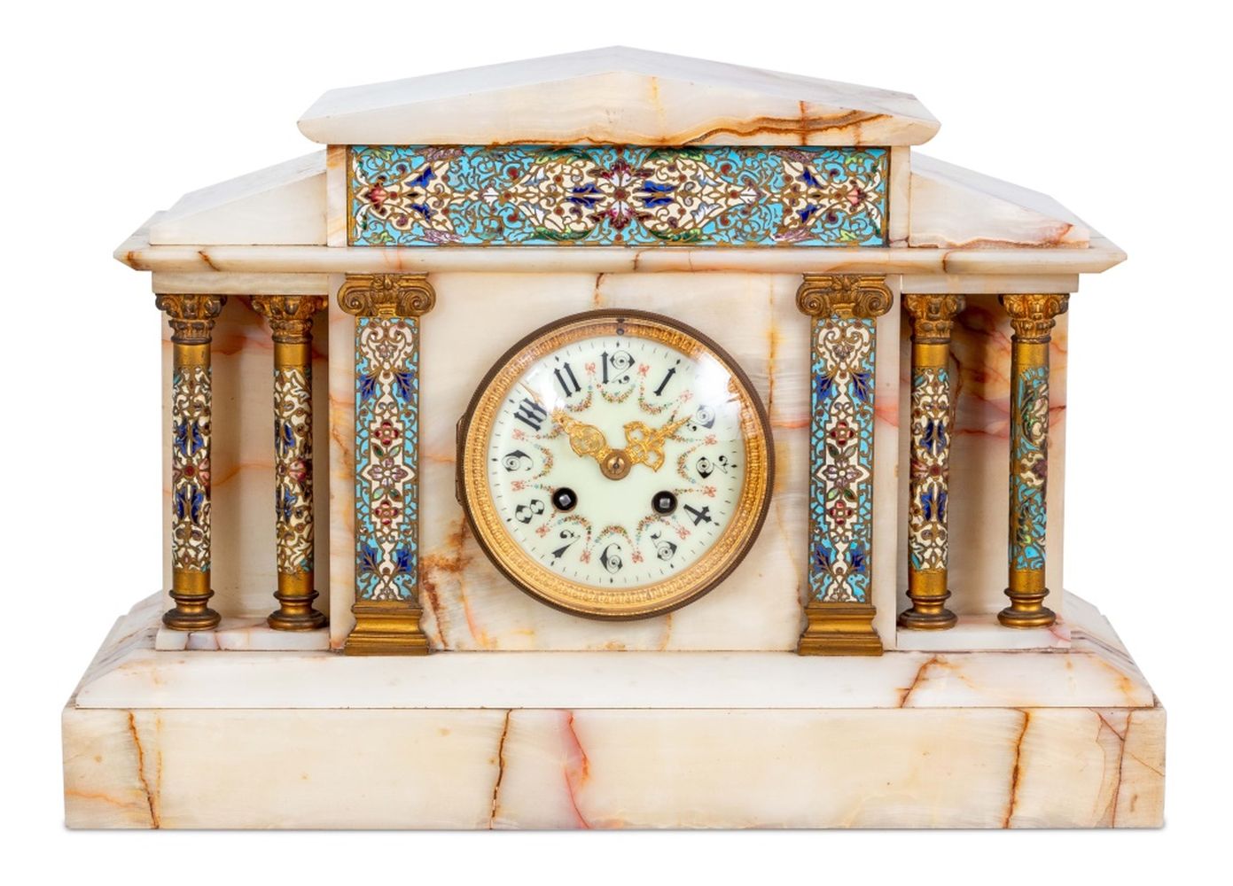 French Alabaster and Champleve Enamel Mantel Clock