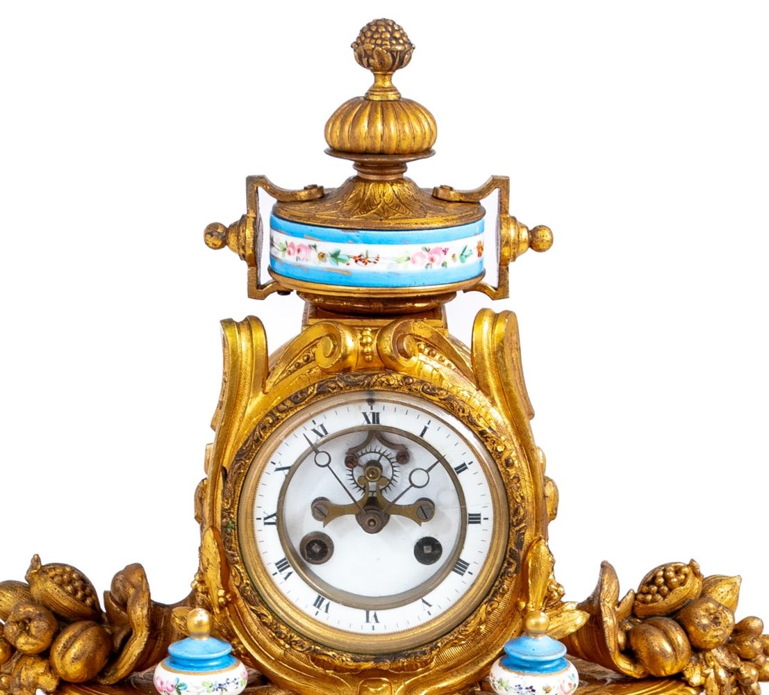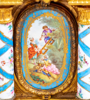Louis XVI Style Gilt Metal and Sevres Mantel Clock