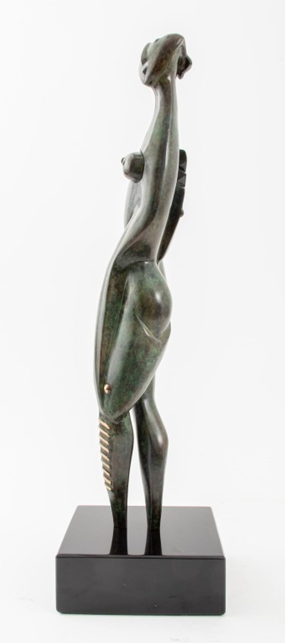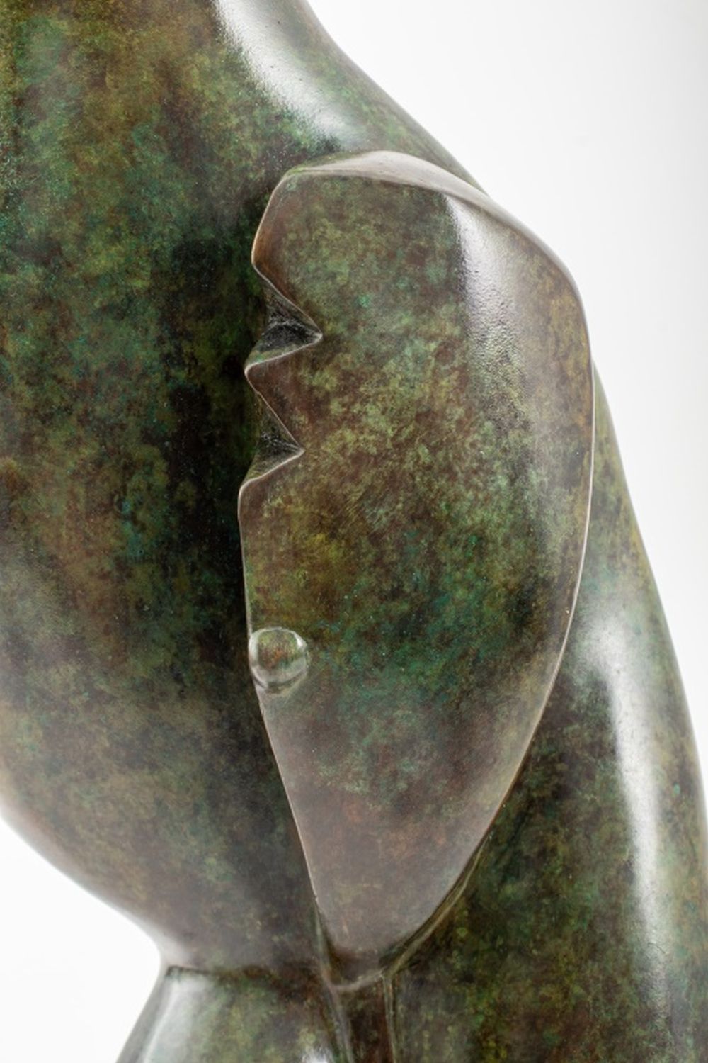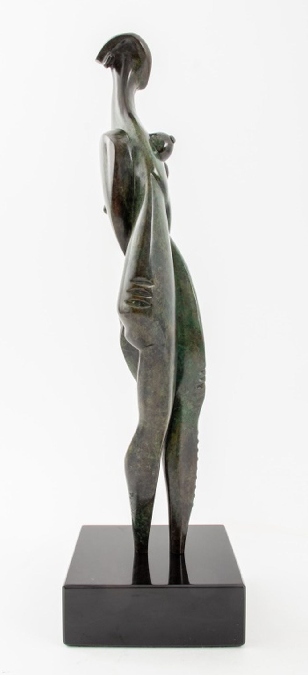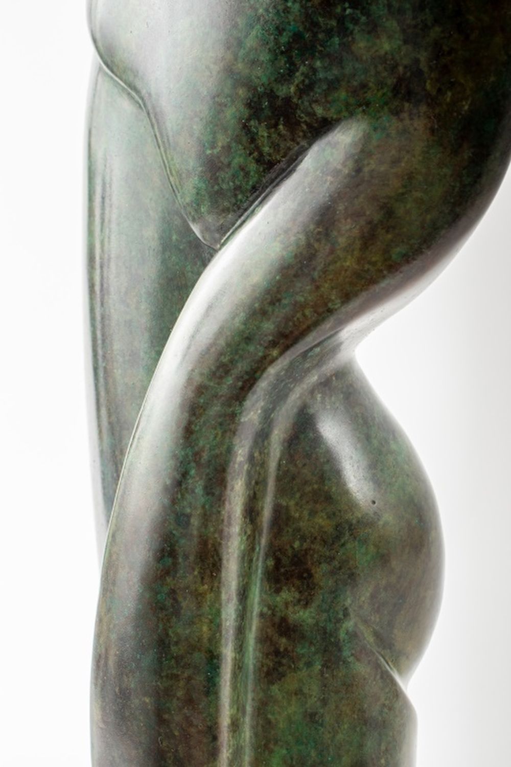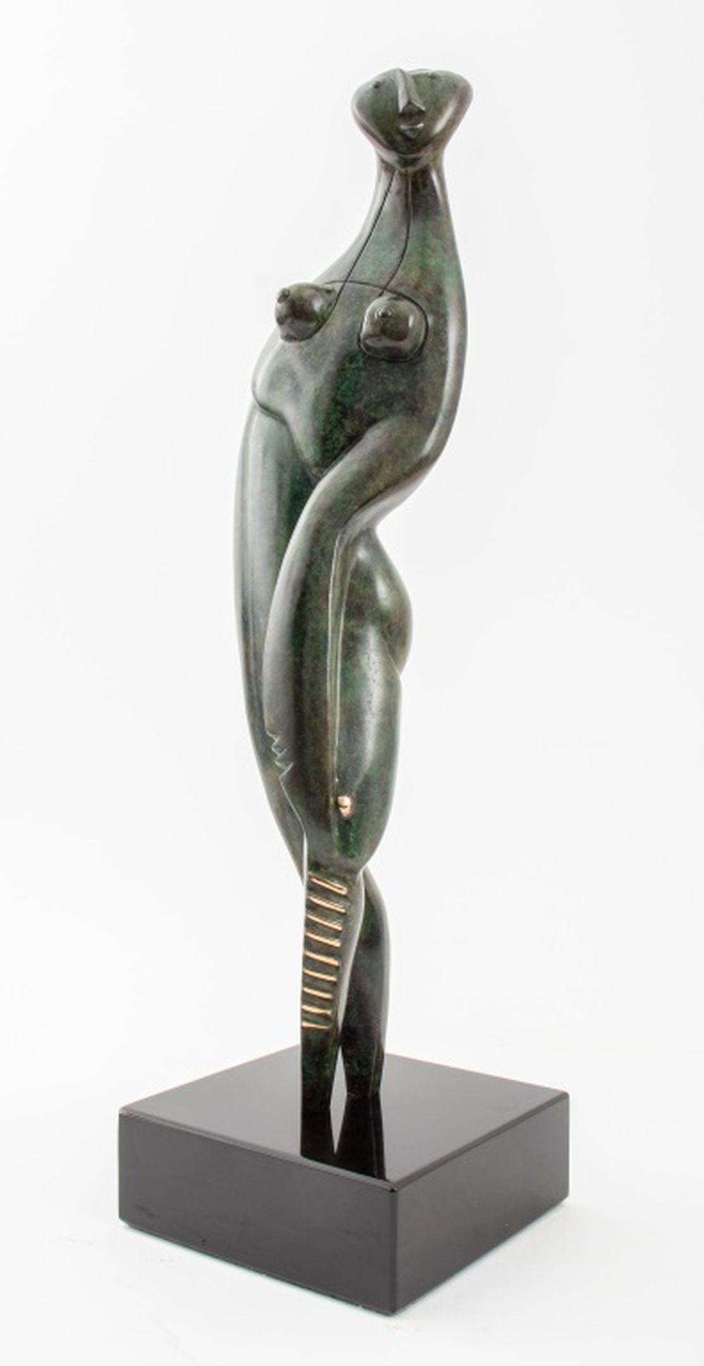 Ronald K. Parker (American, b. 1939) "Life", Verdigris Patinated Bronze Sculpture, 1999, signed "Parker" and marked "c 99 38/99" to leg. 18" H x 5.25" W x 5.25" D. Provenance: From the collection of the publisher. Keywords: Statue, Modern, Abstract, Abstraction, Female figure, Figural, Woman, Tabletop sculpture, Contemporary Art, Decorative Arts