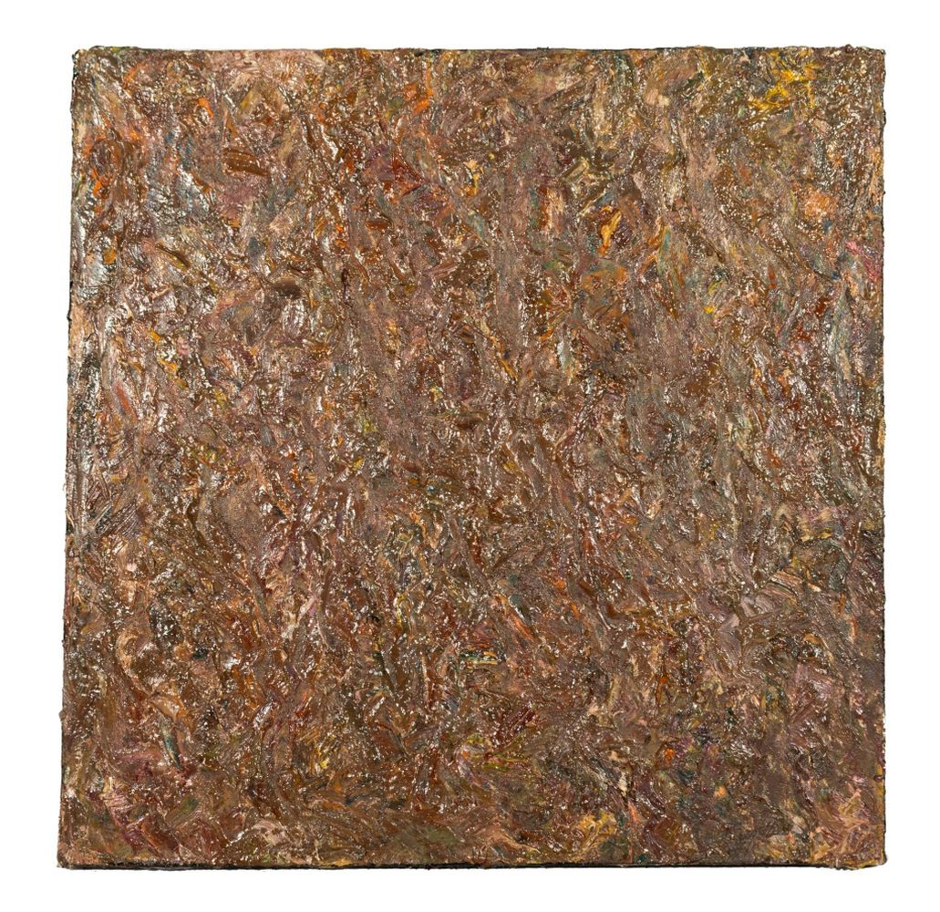 Andy Miller (American, b. 1950), Abstract Composition, Oil on Canvas, 1988, impasto details, warm pink brown with green hues, unsigned, dated and with artist's studio stamp to verso, unframed. 14.25" H x 14.25" W. Provenance: From the Studio of Andy Miller. Keywords: Painting, Works on Canvas, Abstraction, Abstract Expressionist, Abstract Expressionism, AbEx, Post-War and Contemporary Art, Polychrome, 20th Century School, Circle of Milton Resnick and Pat Passlof