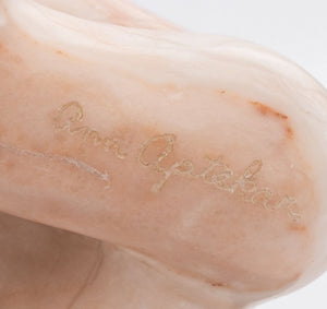 Ann Aptekar (American, XX-XXI) Figural Group Pink Marble Sculpture, signed, atop a black base. Overall: 17.5" H x 14" W x 12.5" D. Provenance: From the Park Avenue Estate of Designer Neal Small. Keywords: Statue, Tabletop sculpture, Carving, Hardstone, Figurative, Abstraction, Modernist, Modernism, Women Artists, Contemporary Art, Decorative Arts