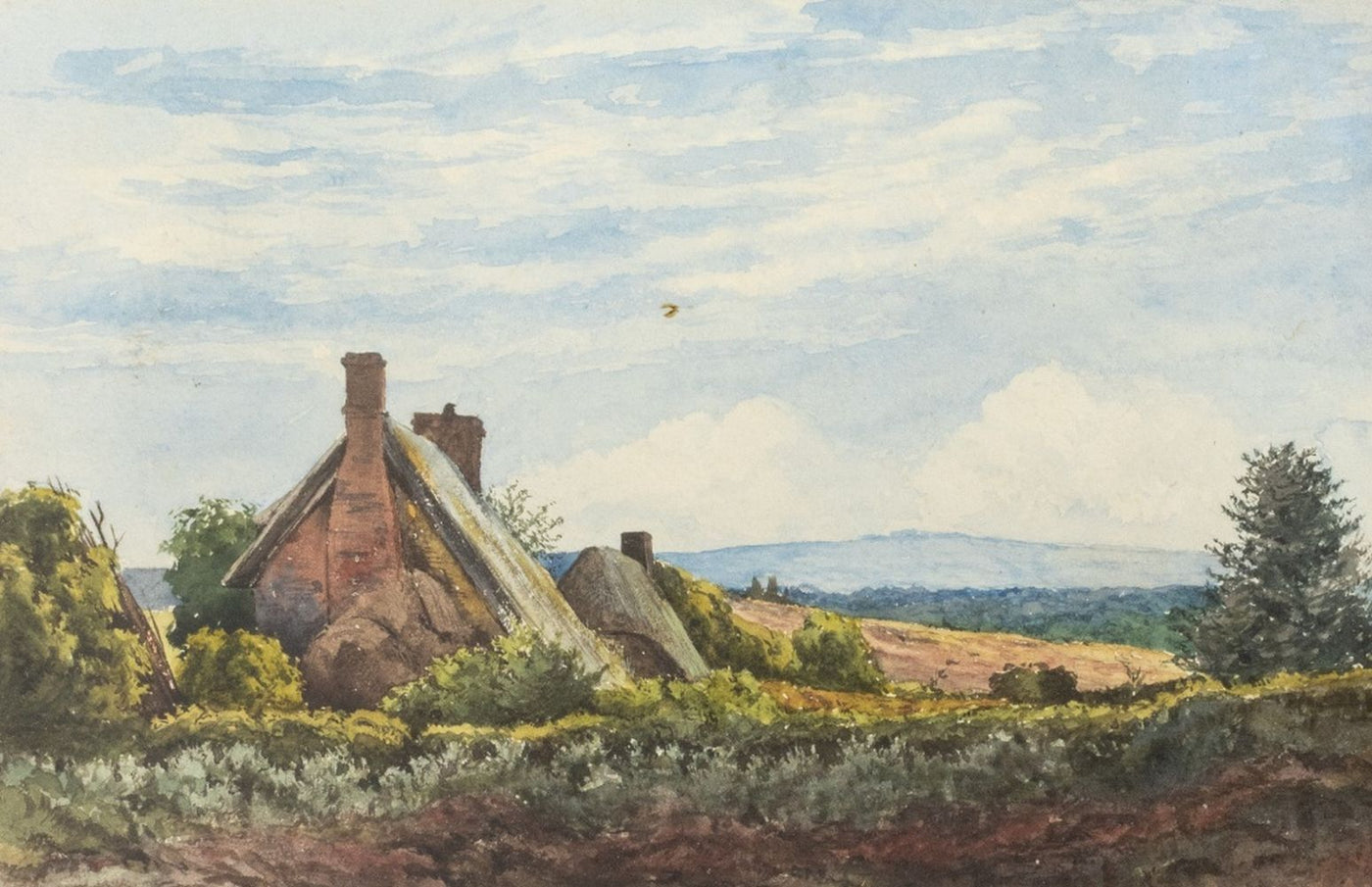British School Rural Landscape Watercolor, 19th C.