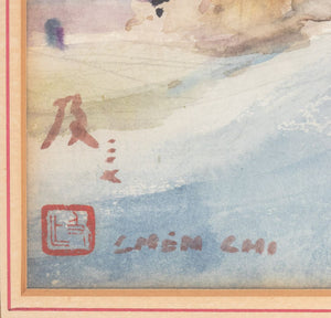 Chen Chi (Chinese/American, 1912-2005), New York City Street Scene, Watercolor on Paper, inscribed "Ji" in Mandarin, signed, and with chop seal mark lower left, silvered wood frame. Image: 16" H x 12.5" W; frame: 25.5" H x 21.75 W. Provenance: From a New York City Collection. Keywords: Painting, Watercolour, Gouache, Works on Paper, Cityscape, Urban landscape scene, Traffic light, Brownstones, Architecture, Buildings, Asian Artists, Post-War and Contemporary Art
