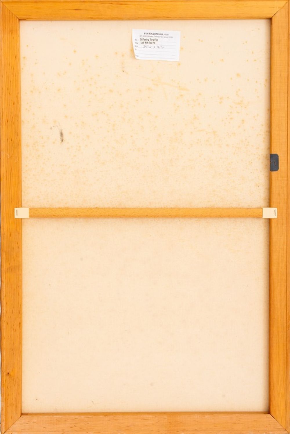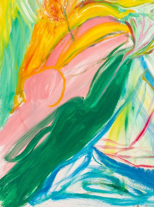 Eva Bouzard-Hui (American, 1936-2023), "Lady with Tea Pot", Oil on Canvas, apparently unsigned, artist's estate label with title, numbered "Oil Painting Thirty Four", and dimensions to verso, unframed. 36" H x 24" W. Provenance: Eva Bouzard-Hui artist estate. Note: Eva Bouzard-Hui (American, 1936-2023) artist, teacher, and philanthropist earned a degree in Art Education from University of South Carolina and a Master’s degree from Columbia University in 1961. The award-winning artist taught art for decades in the United States and China; after retirement, she also taught art to inmates in New Jersey. Keywords: Painting, Oil painting, Works on Canvas, Naive Art, Self-Taught, Figural, Figurative, Abstract, Polychrome, Surreal, Surrealism, Expressionism, Painting, Floral, Women Artists, Contemporary Art
