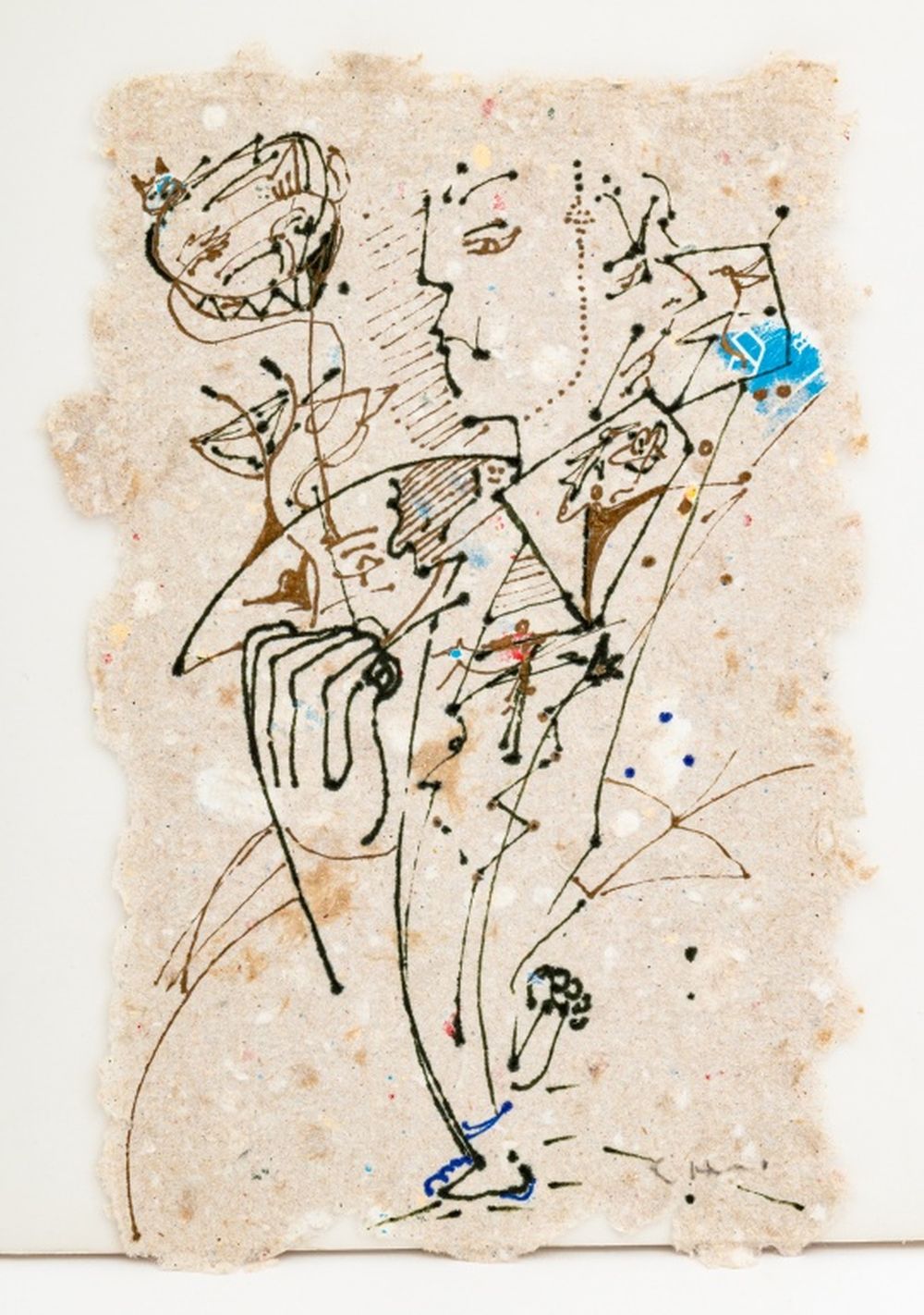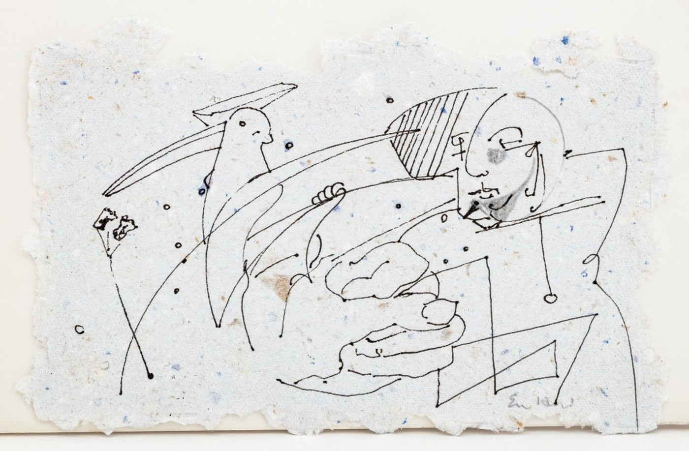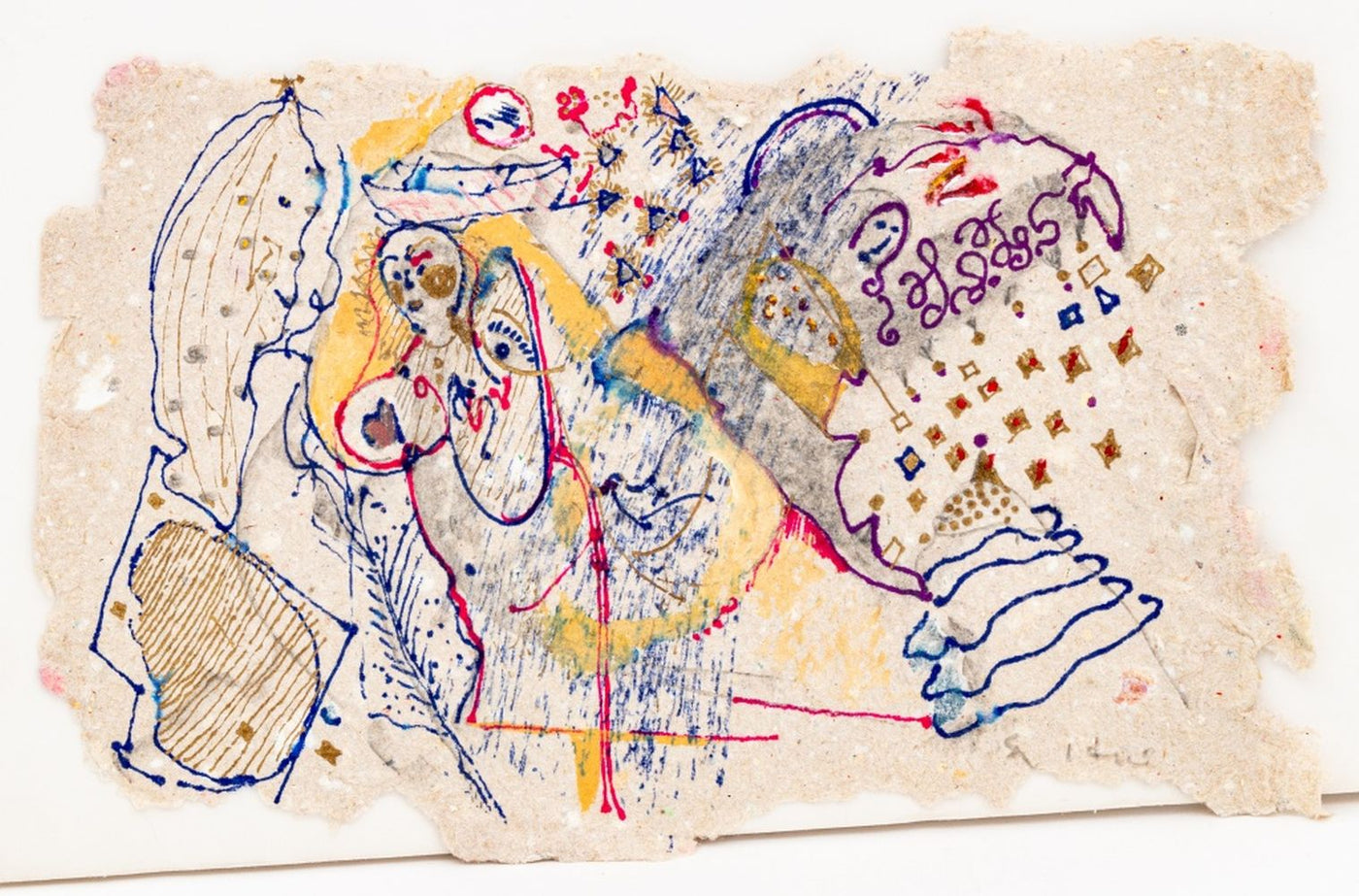 Eva Bouzard-Hui (American, 1936-2023), Fifteen Surrealist Compositions, Mixed Media on Handmade Paper, comprising: "Spirit", signed in pencil lower right, "The Oranges Rot", 1997, signed and dated lower right, "Reformation Seeds", 1997, signed and dated lower right, "A Desperate Thought", 1998, signed and dated lower right, "Rocket Couple", signed in pencil lower right, "Quack, Quack Steps", signed lower right, "Clench that Fist!", signed in pencil lower right, "The Serpents Dream",signed in pencil lower right, "Memories Scale", 1998, signed and dated in pencil lower right, "TEE-HEE-HEE", 1998, pencil signed and dated lower right, "A Couple's Shade", signed in pencil lower right, "Soul's Escape", signed in pencil lower right, "Find the Bird", signed in pencil lower right, "Ghost Soul's Play", signed in pencil lower right, and "Closed", signed in pencil lower right, unframed. Largest: 9.75" H x 6.5" W. Provenance: Eva Bouzard-Hui artist estate. Note: Eva Bouzard-Hui (American, 1936-2023) artist, teacher, and philanthropist earned a degree in Art Education from University of South Carolina and a Master’s degree from Columbia University in 1961. The award-winning artist taught art for decades in the United States and China; after retirement, she also taught art to inmates in New Jersey. Keywords: Drawing, Works on Paper, Abstraction, Surrealism, Figural, Figurative, Animalier, Drawing, Watercolor, Ink, Line drawing, Dada style, Expressionist, Polychrome, Handmade, Women Artists, Contemporary Art