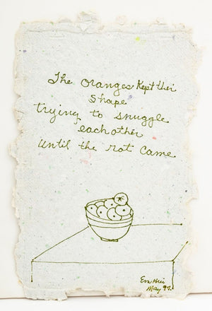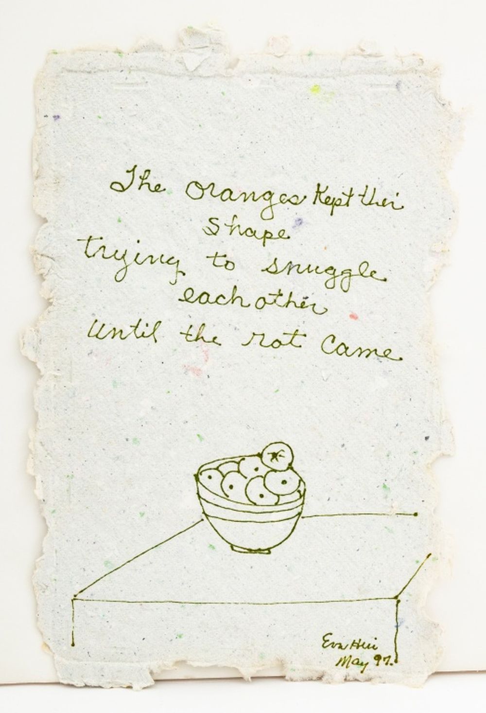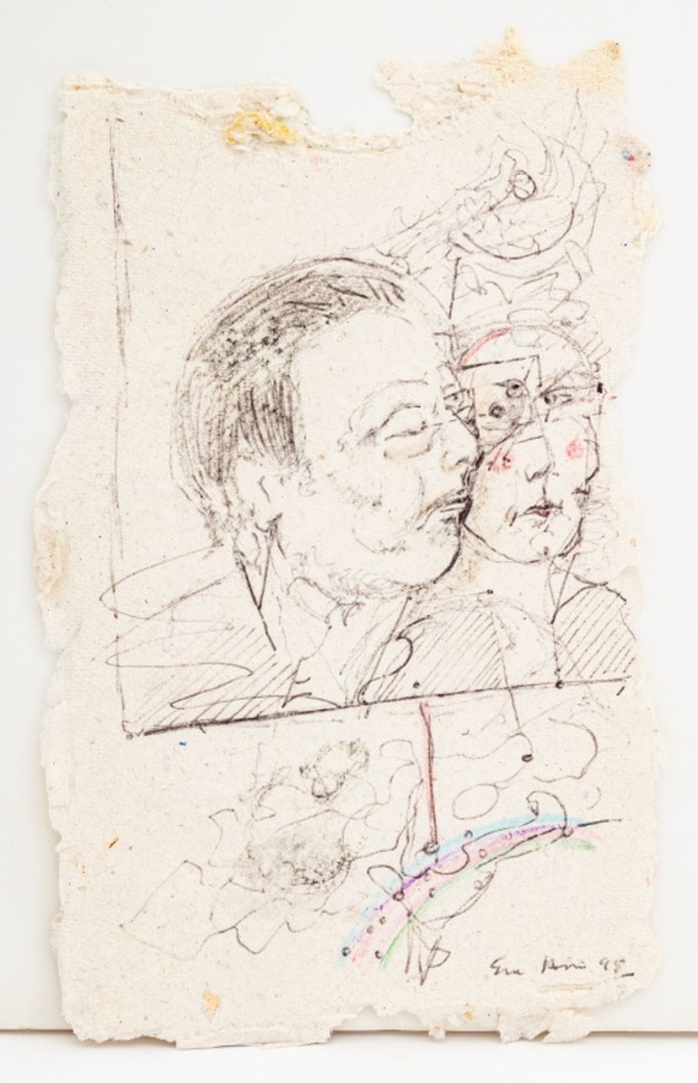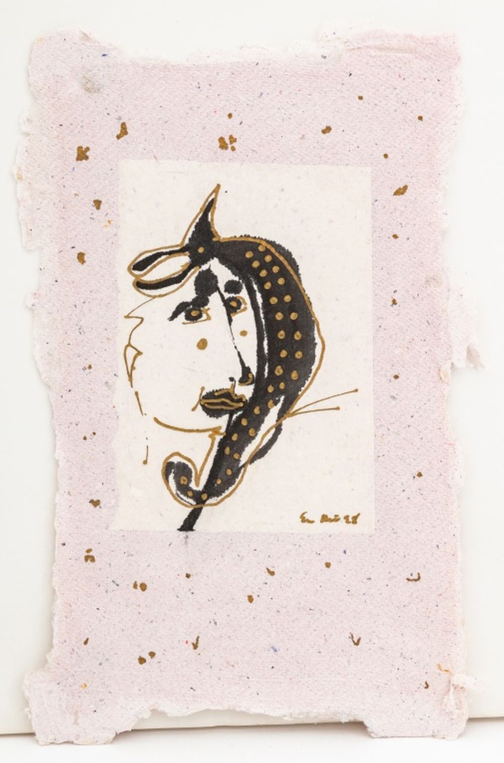 Eva Bouzard-Hui (American, 1936-2023), Fifteen Surrealist Compositions, Mixed Media on Handmade Paper, comprising: "Spirit", signed in pencil lower right, "The Oranges Rot", 1997, signed and dated lower right, "Reformation Seeds", 1997, signed and dated lower right, "A Desperate Thought", 1998, signed and dated lower right, "Rocket Couple", signed in pencil lower right, "Quack, Quack Steps", signed lower right, "Clench that Fist!", signed in pencil lower right, "The Serpents Dream",signed in pencil lower right, "Memories Scale", 1998, signed and dated in pencil lower right, "TEE-HEE-HEE", 1998, pencil signed and dated lower right, "A Couple's Shade", signed in pencil lower right, "Soul's Escape", signed in pencil lower right, "Find the Bird", signed in pencil lower right, "Ghost Soul's Play", signed in pencil lower right, and "Closed", signed in pencil lower right, unframed. Largest: 9.75" H x 6.5" W. Provenance: Eva Bouzard-Hui artist estate. Note: Eva Bouzard-Hui (American, 1936-2023) artist, teacher, and philanthropist earned a degree in Art Education from University of South Carolina and a Master’s degree from Columbia University in 1961. The award-winning artist taught art for decades in the United States and China; after retirement, she also taught art to inmates in New Jersey. Keywords: Drawing, Works on Paper, Abstraction, Surrealism, Figural, Figurative, Animalier, Drawing, Watercolor, Ink, Line drawing, Dada style, Expressionist, Polychrome, Handmade, Women Artists, Contemporary Art