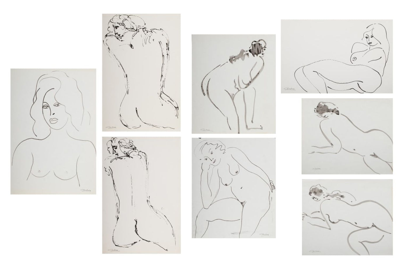 Norman Carton (Ukrainian-American, 1908-1980), Eight Nude Woman Compositions, Ink on Paper, each signed, unframed. Largest: 12" H x 18.75" W. Provenance: From a New York City Collection. Keywords: Drawings, Works on Paper, Gestural, Female Nude, Female Form, Figural, Feminine Nude, Abstract, Study, Model study, Studies, Abstract Expressionist, 20th Century School, Post-War and Contemporary
