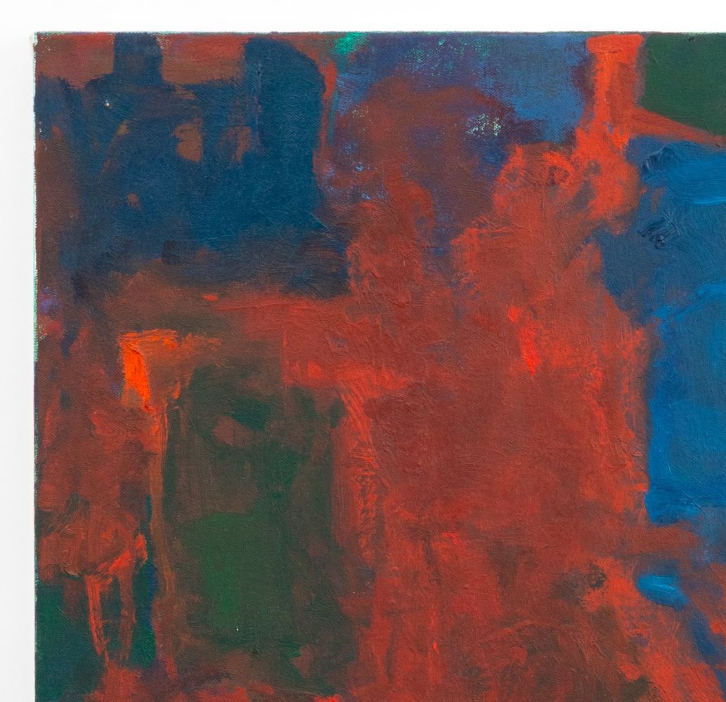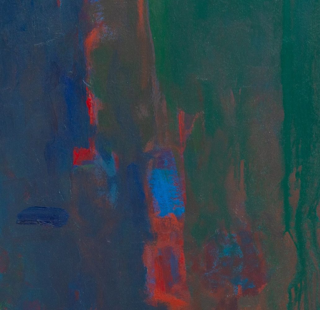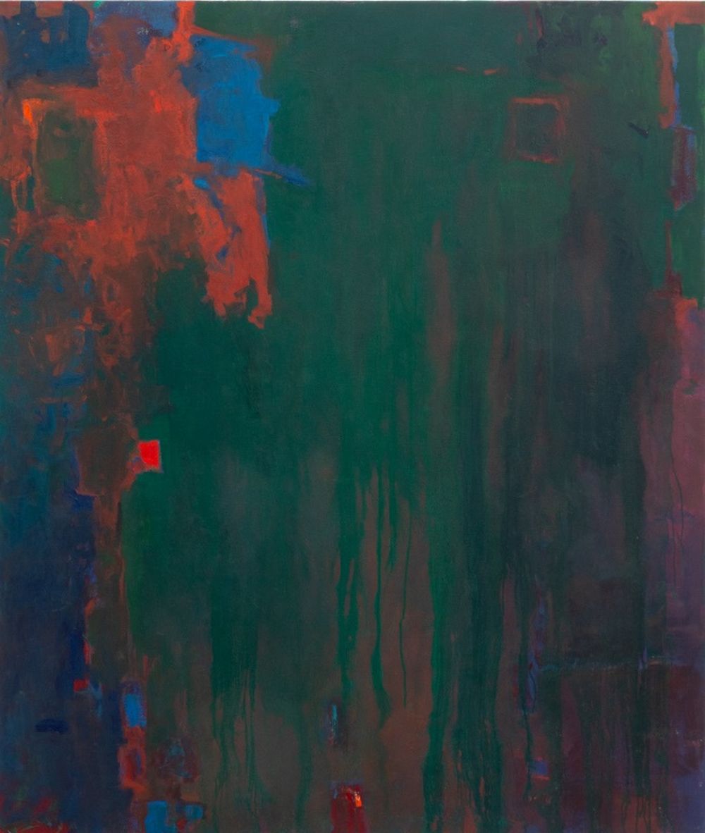 Robert O'Meara (American, 1957-2024), Abstract Composition in Green, Oil on Canvas, with blue and red squares, unsigned, unframed. 54.25" H x 46" W x 1.5" D. Provenance: From a 333 East 75th Street Estate. Keywords: Painting, Oil painting, Works on Canvas, Abstraction, Abstract Expressionism, Abstract Expressionist, Color field, Geometric, Polychrome, Contemporary Art