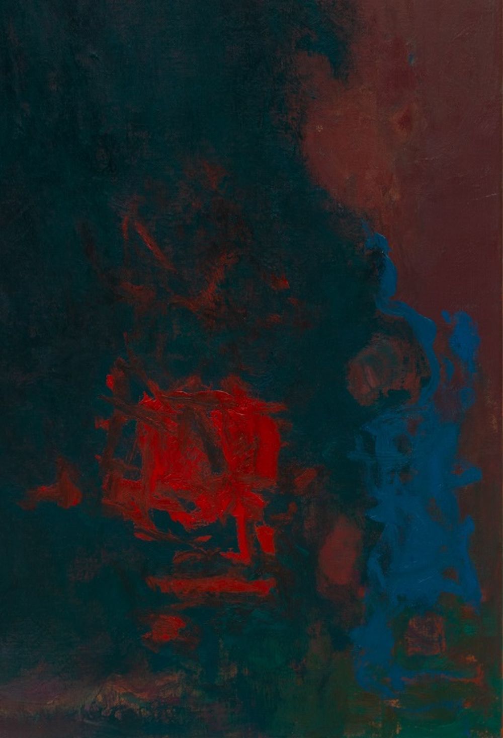 Robert O'Meara (American, 1957-2024), Abstract Composition, Oil on Canvas, maroon field with near black design, apparently unsigned, unframed. 48" H x 40" W. Provenance: From a 333 East 75th Street Estate. Keywords: Painting, Contemporary, Abstraction, Moody, Abstract Expressionist, Expressionism, AbEx, Polychrome, Contemporary Art