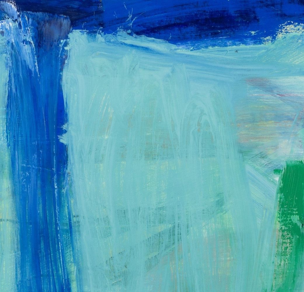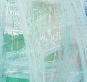 Robert O'Meara (American, XX-XXI), Abstract Composition Triptych, Oil on Canvas, each signed to verso, unframed. Panels: 16" H x 20" W; overall: 16" H x 60". Provenance: From a 333 East 75th Street Estate. Keywords: Painting, Works on Canvas, Abstraction, Turquoise, Blue, Green, Cool Palette, Polychrome, Contemporary Art