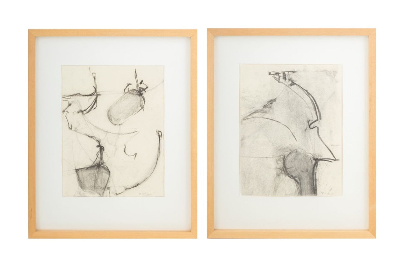 Robert O'Meara (American, 1957-2024), Two Abstract Compositions, Charcoal on Paper, signed lower right, wood frame. Image: 13" H x 10" W; frame: 20.5" H x 16.5" W. Provenance: From a 333 East 75th Street Estate. Keywords: Works on paper, Drawings, Abstraction, Monochrome, Gestural, Graphite, Abstract Expressionism, Expressionist, Ab Ex, Contemporary Art