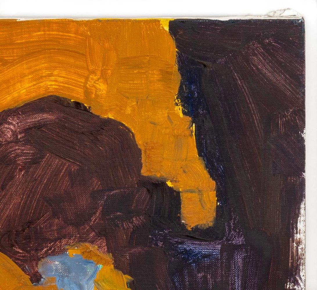 Robert O'Meara (American, 1957-2024), Abstract Composition in Blue and Brown, Oil on Canvas, signed to verso, unframed. 14" H x 22" W. Provenance: From a 333 East 75th Street Estate. Keywords: Painting, Oil Painting, Statement piece, Ultramarine, Ochre, Raw Umber, Abstraction, Abstract Expressionism, Abstract Expressionist, AbEx, Polychrome, Contemporary Art
