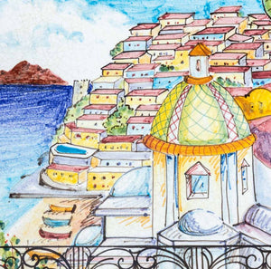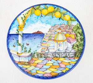 Amalfi Landscape Scene Lava Stone Top Side Table