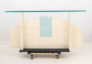 Art Deco Style Glass and Limestone Console Table