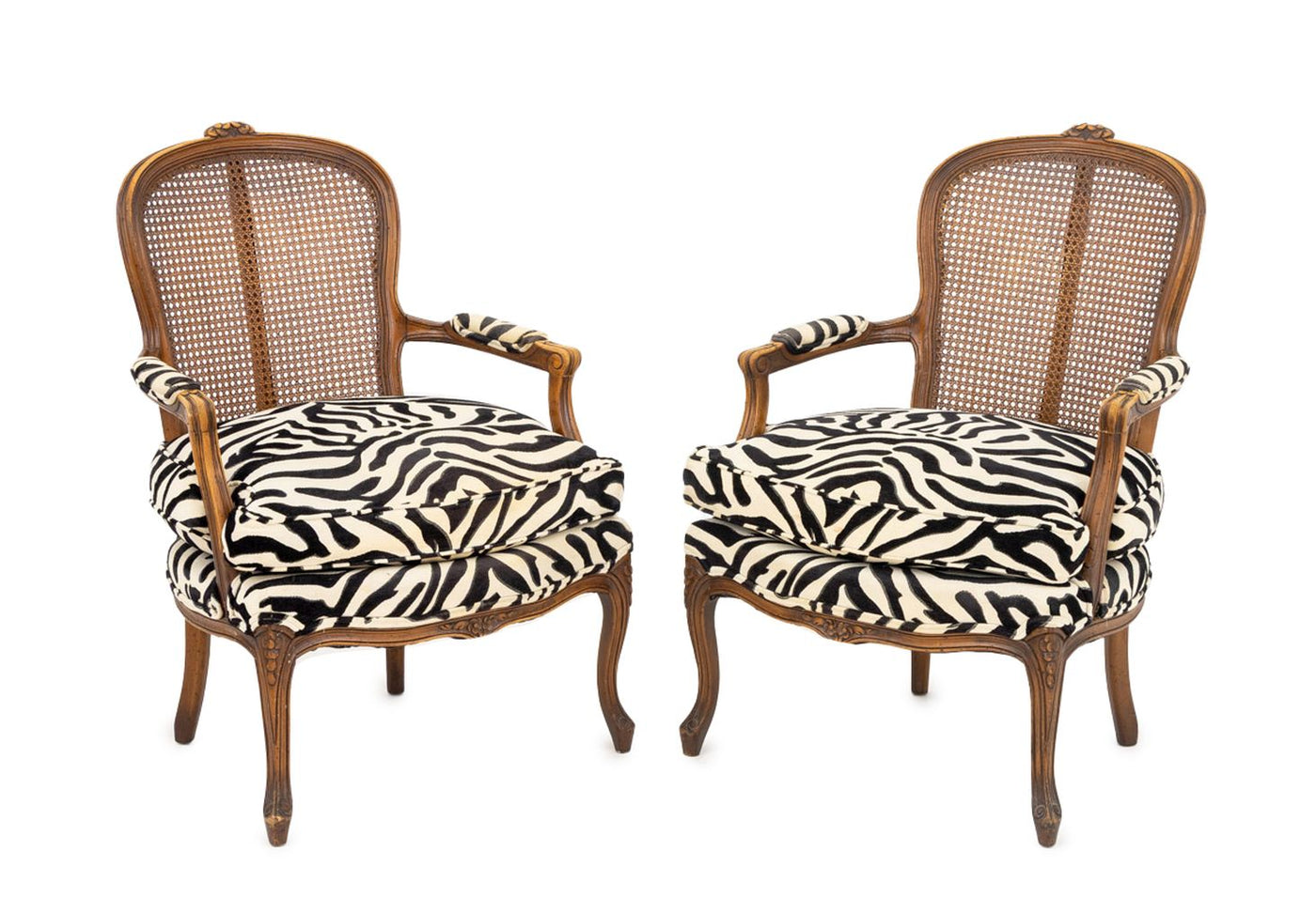 French Country Style Zebra Upholstered Chairs, 2