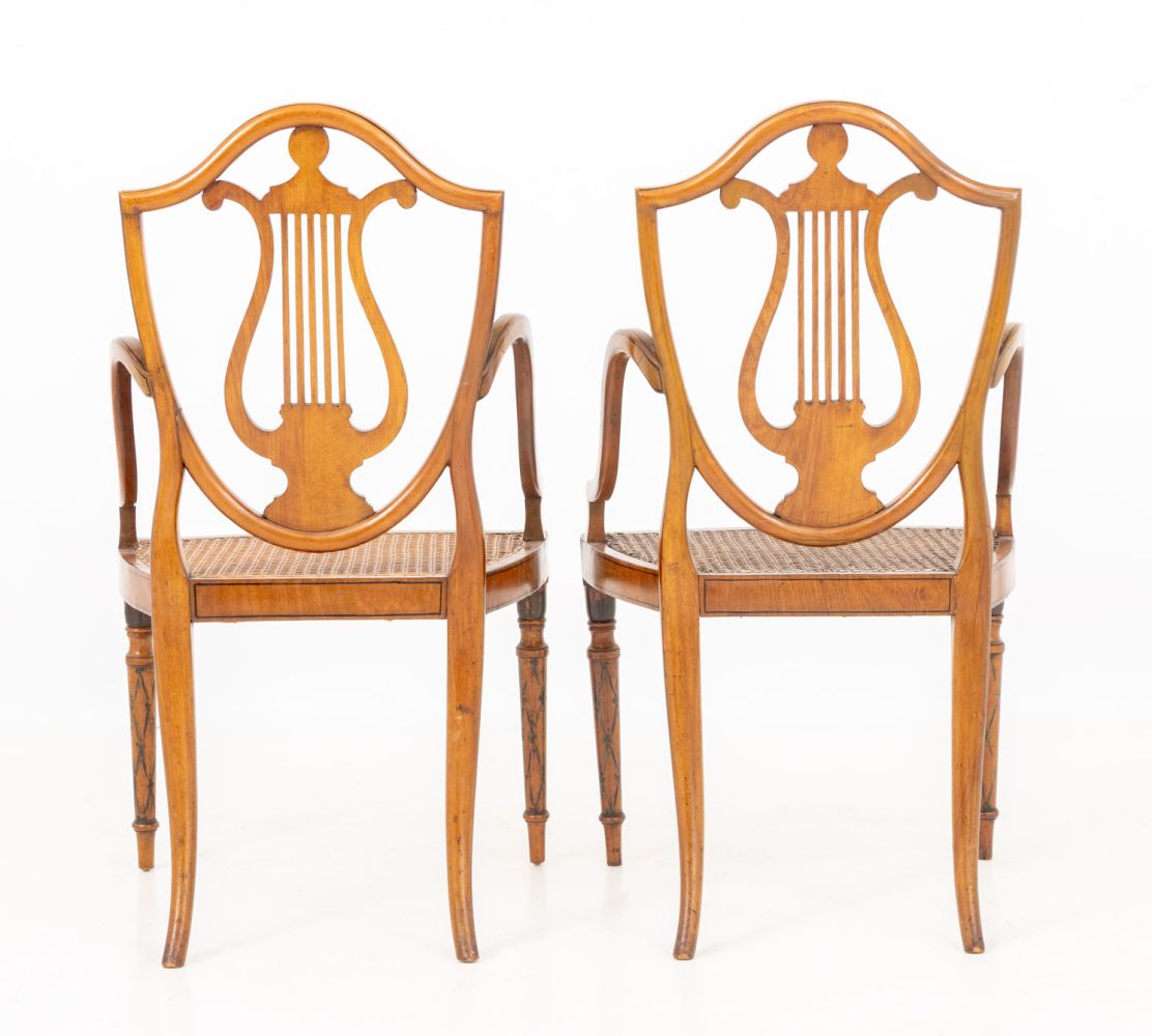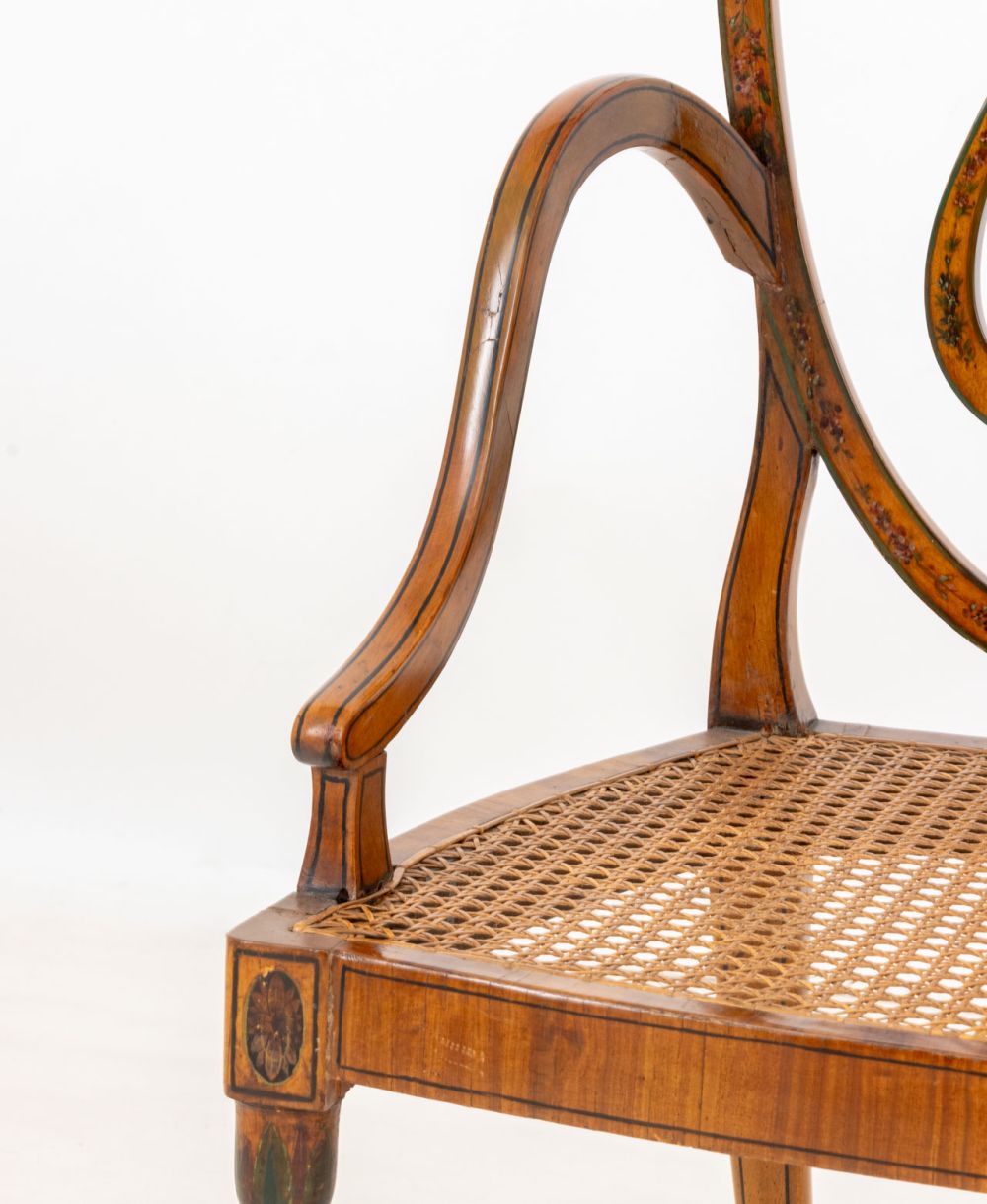 George III Style Painted Satinwood Armchairs, Pair