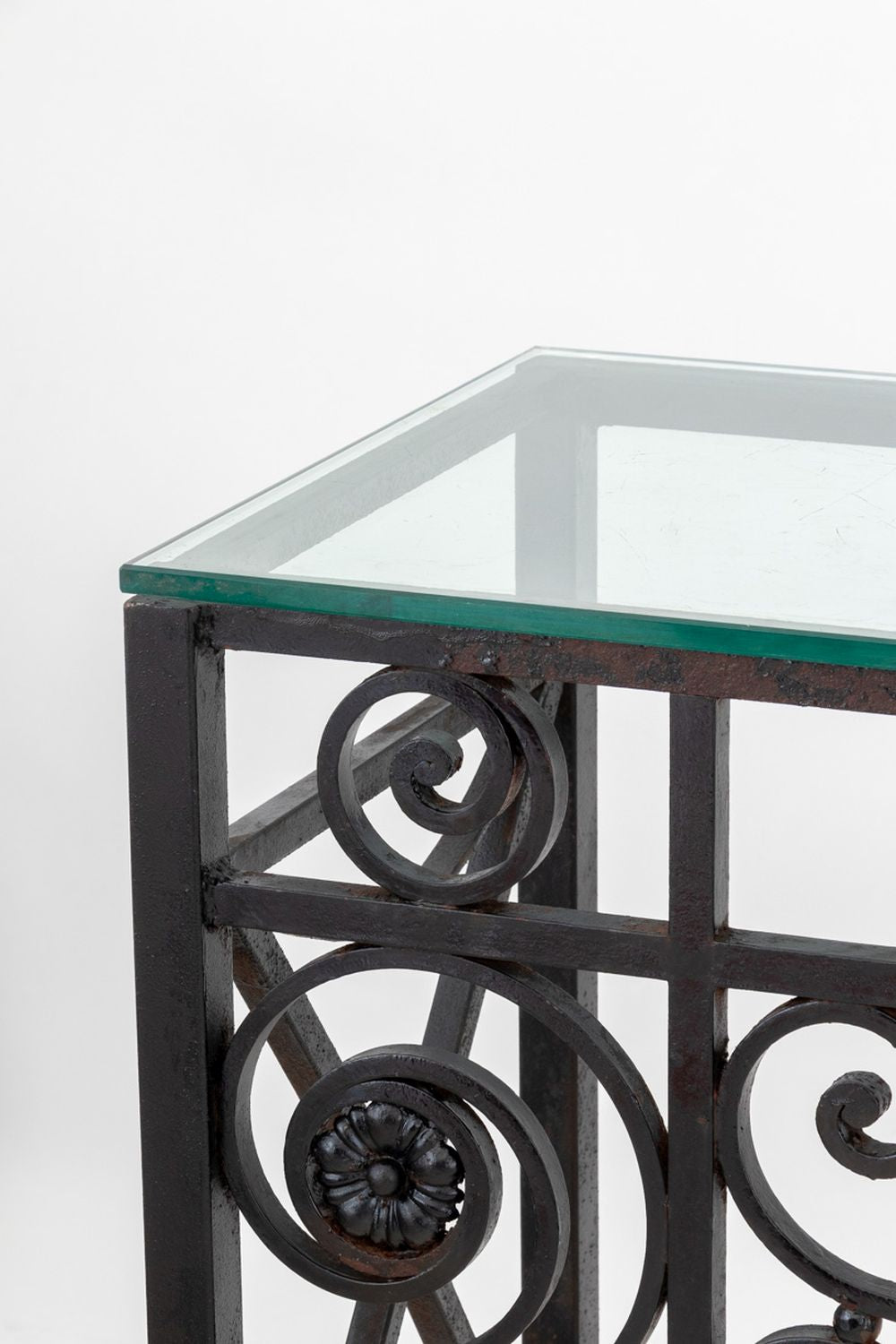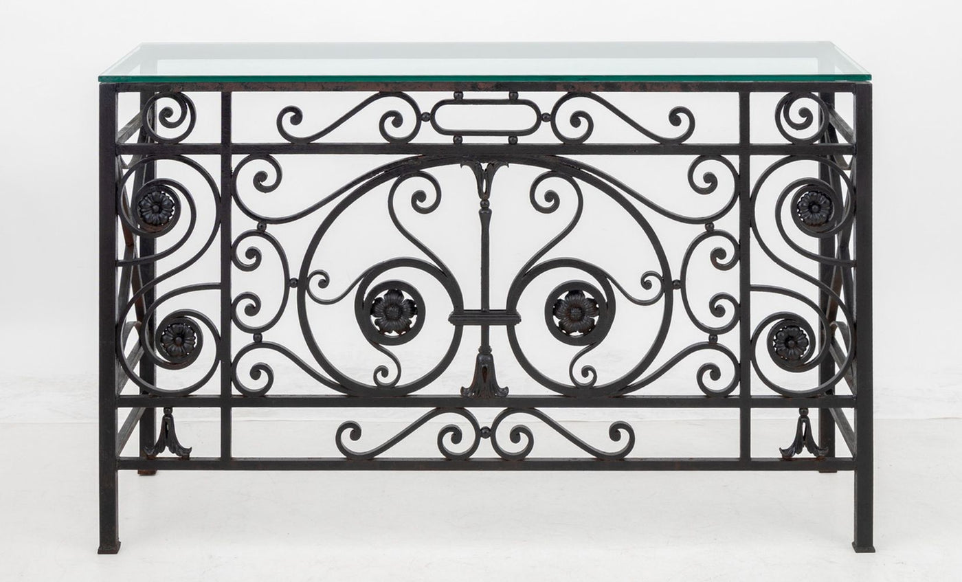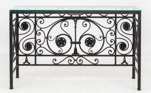 Glass Top Wrought Iron Console Table