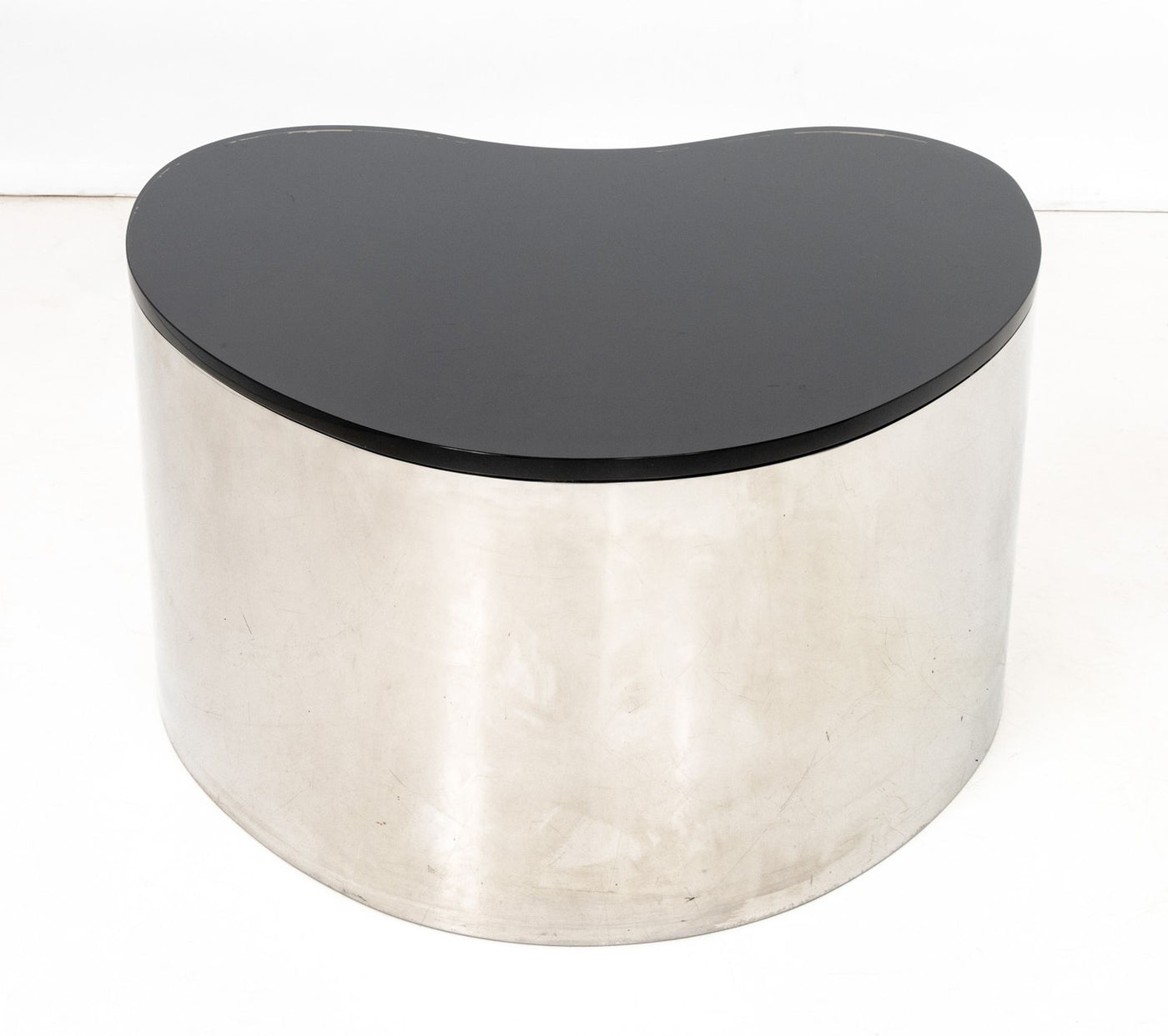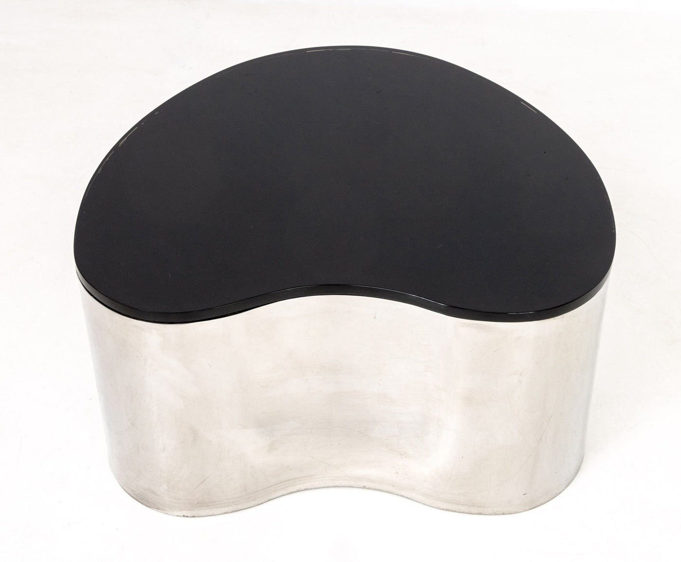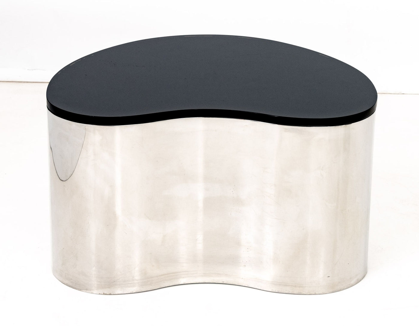 Karl Springer Stainless Steel and Black Glass Freeform Coffee Table, circa 1970.