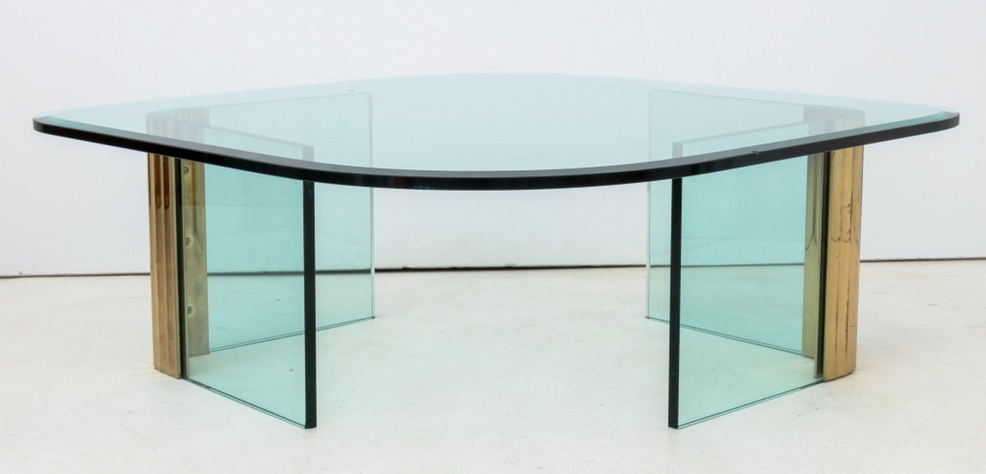 Leon Rosen Pace Collection Glass & Brass Low Table