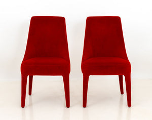 Maxalto Red Mohair Upholstered Chairs, Pair