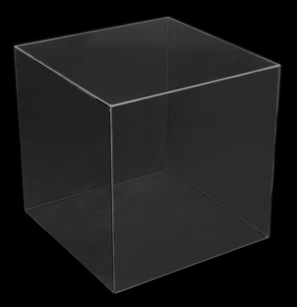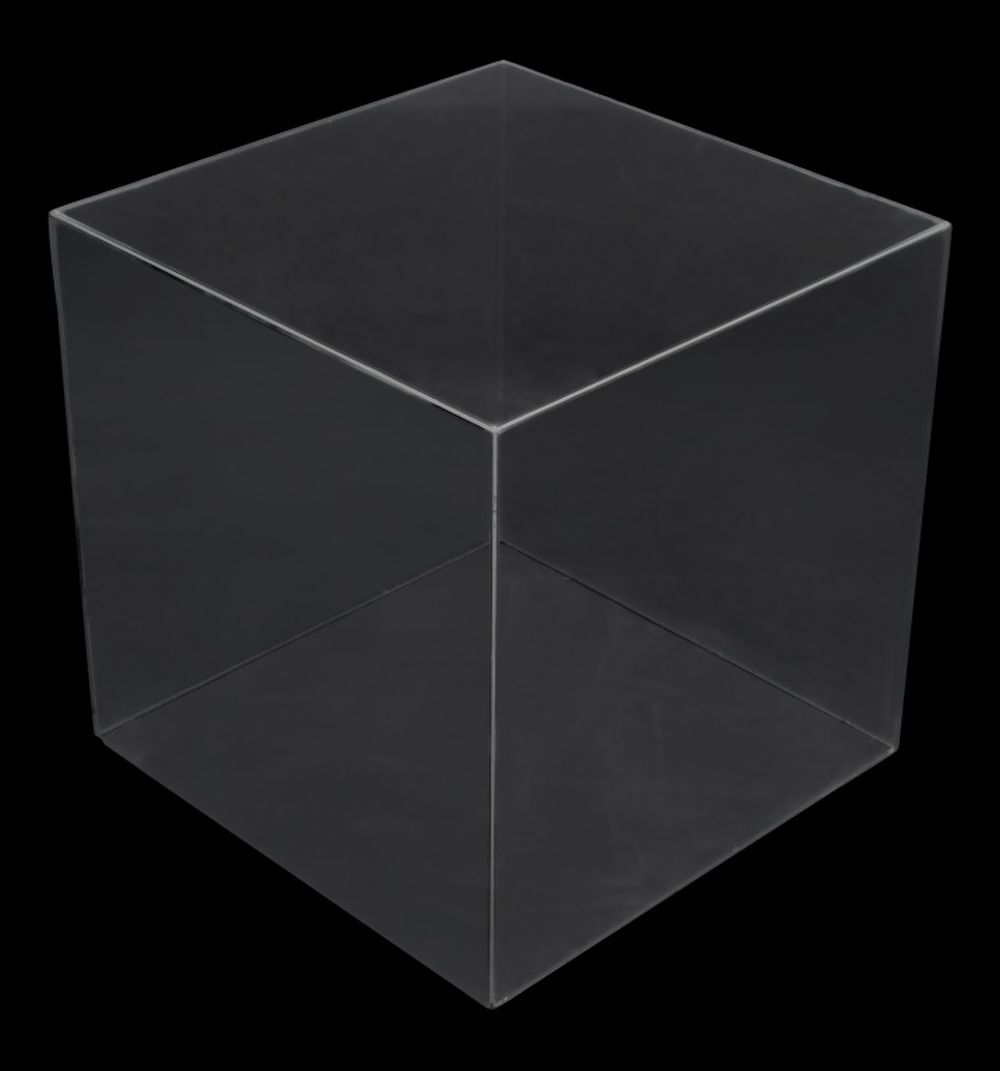 Mid-Century Modern Glass Cube Side Table, apparently unmarked. 16" H x 16" W x 16" D. Provenance: From a New York City Collection. Keywords: Vintage Furniture, Modern Furniture, Accent Table, MCM, Retro, Interior design, Decorative Arts