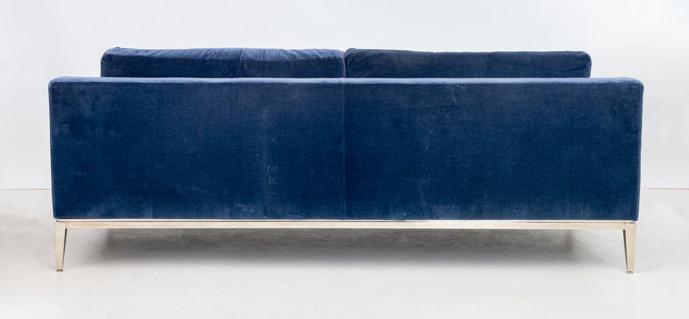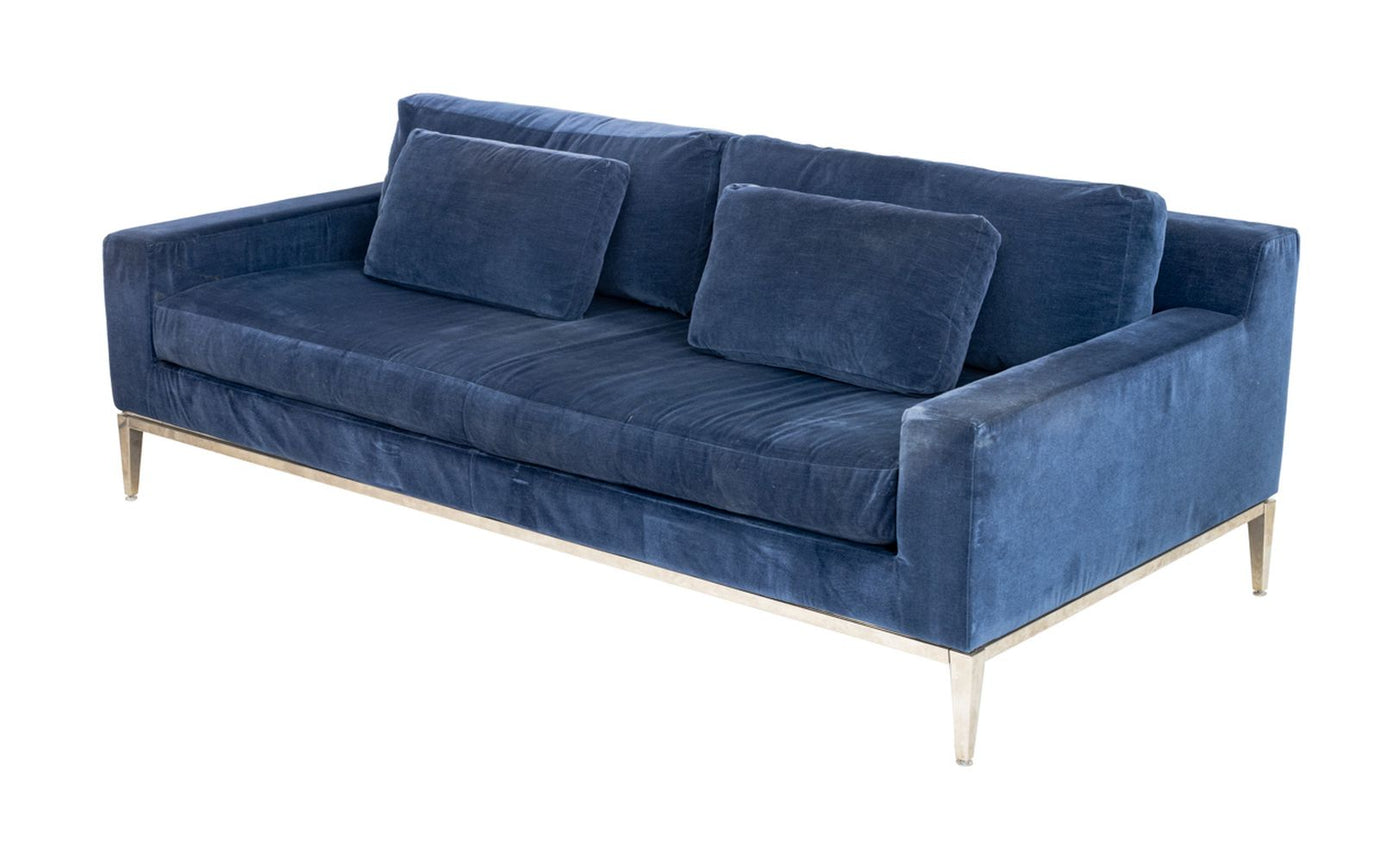 Restoration Hardware Blue Velvet Upholstered Sofa