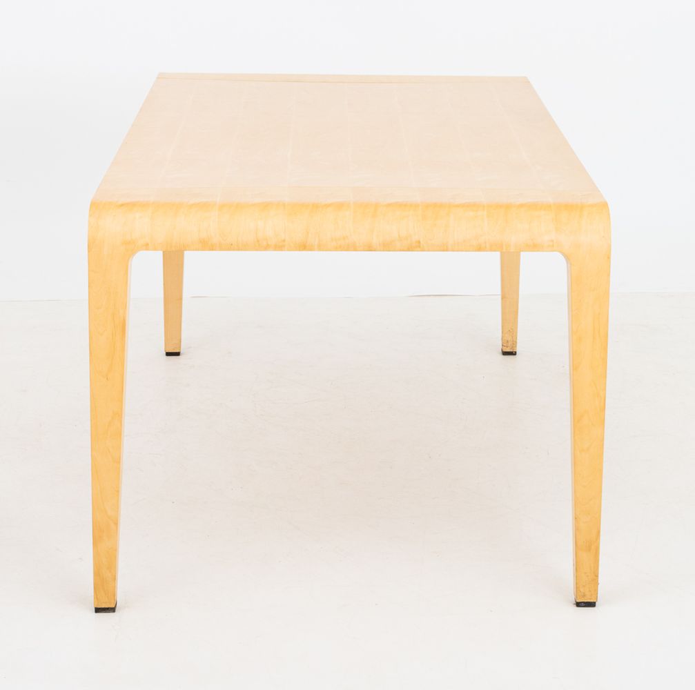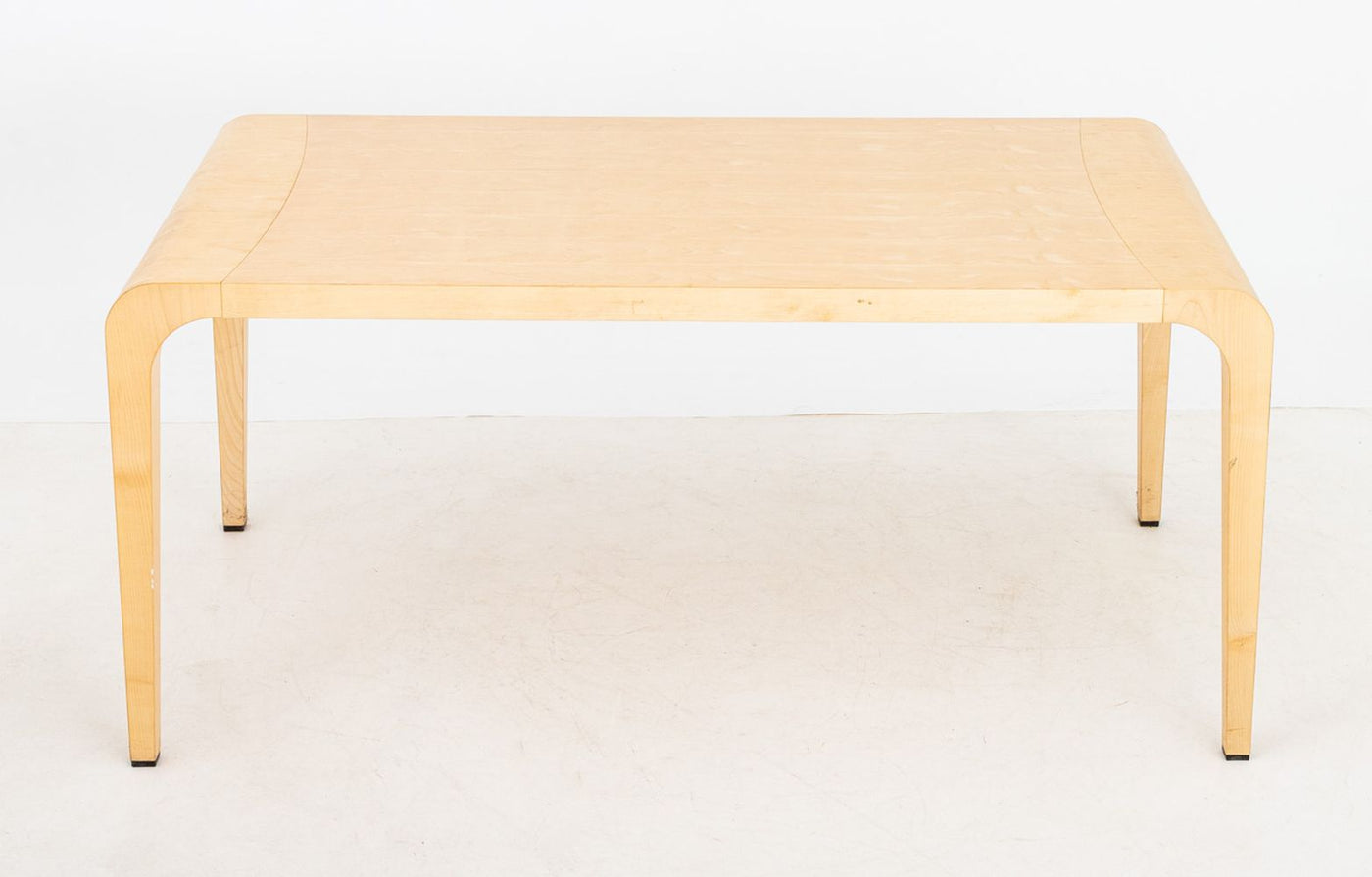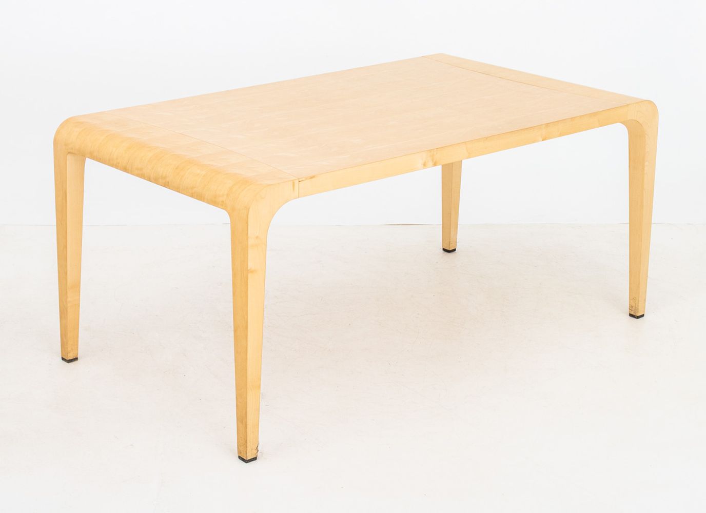 Riccardo Blumer for Alias "Il Volo" Italian Modern Dining Table, 1998, natural maple wood, label underneath. 28.75" H x 64" W x 35.5" D. Provenance: From a Vintage Collection of Italian Designer Furniture Samples. Keywords: Postmodern Design, Minimalist Modern Furniture, Entertaining, Decorative Arts