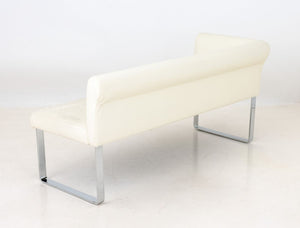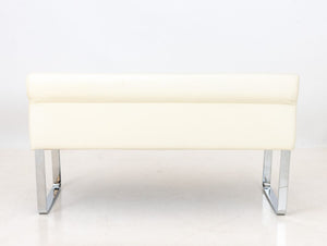 White Leather Upholstered Chrome Banquettes, Pair