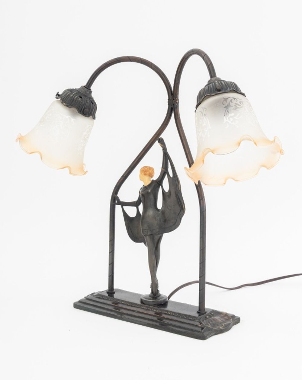 Keywords: Lighting, L.F. Moreau Style, Figurative, Flapper, Moderne, Retro, Interior decor, Decorative Arts