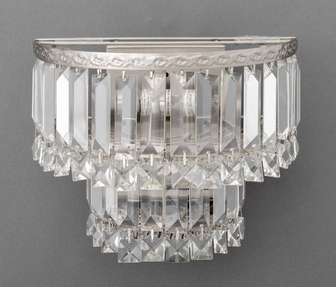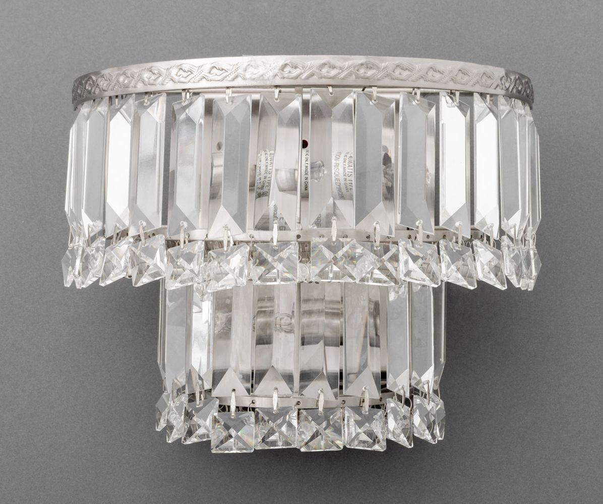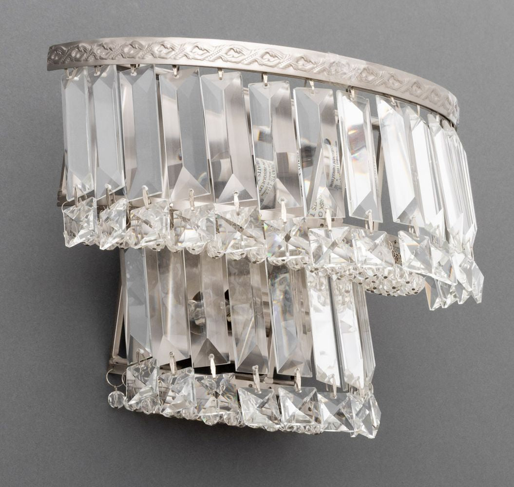 Chrome and Crystal Two-Tier Wall Sconces, Pair