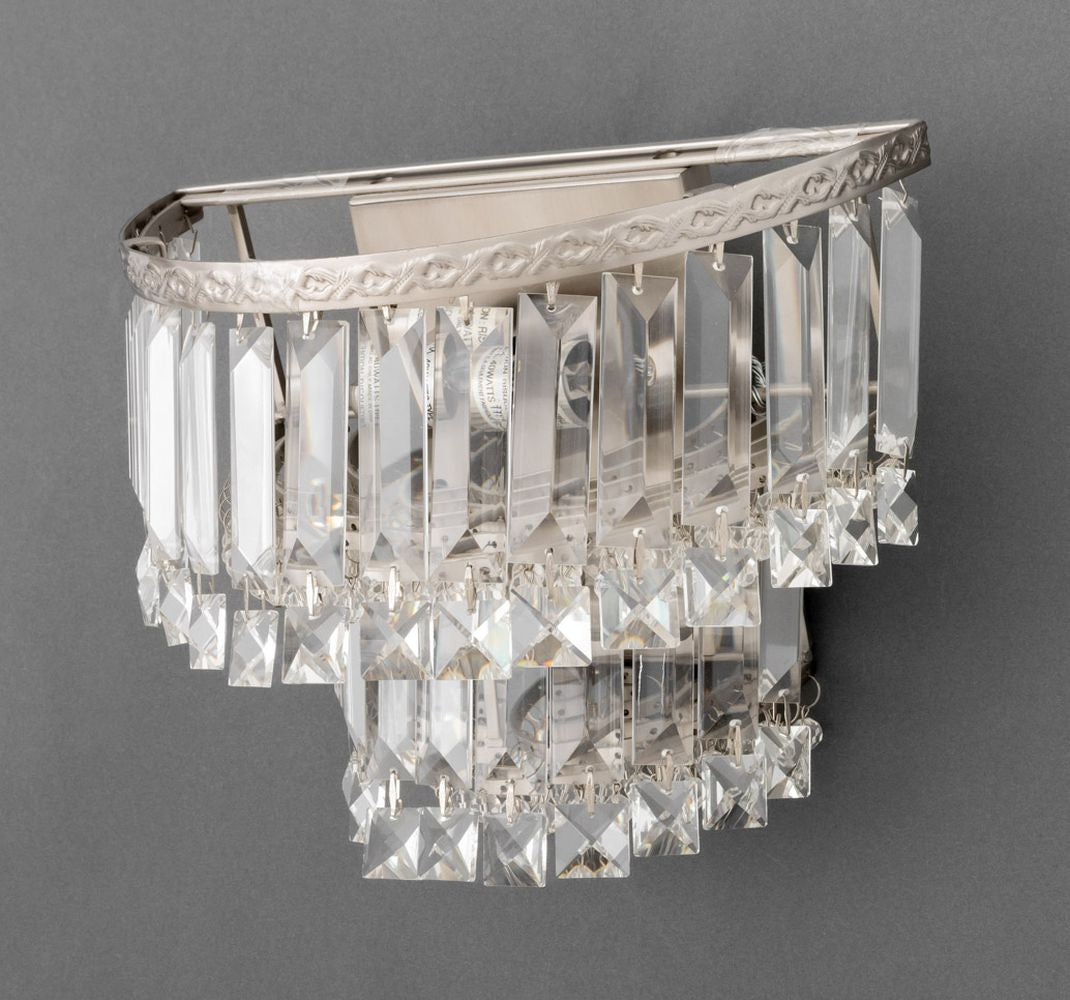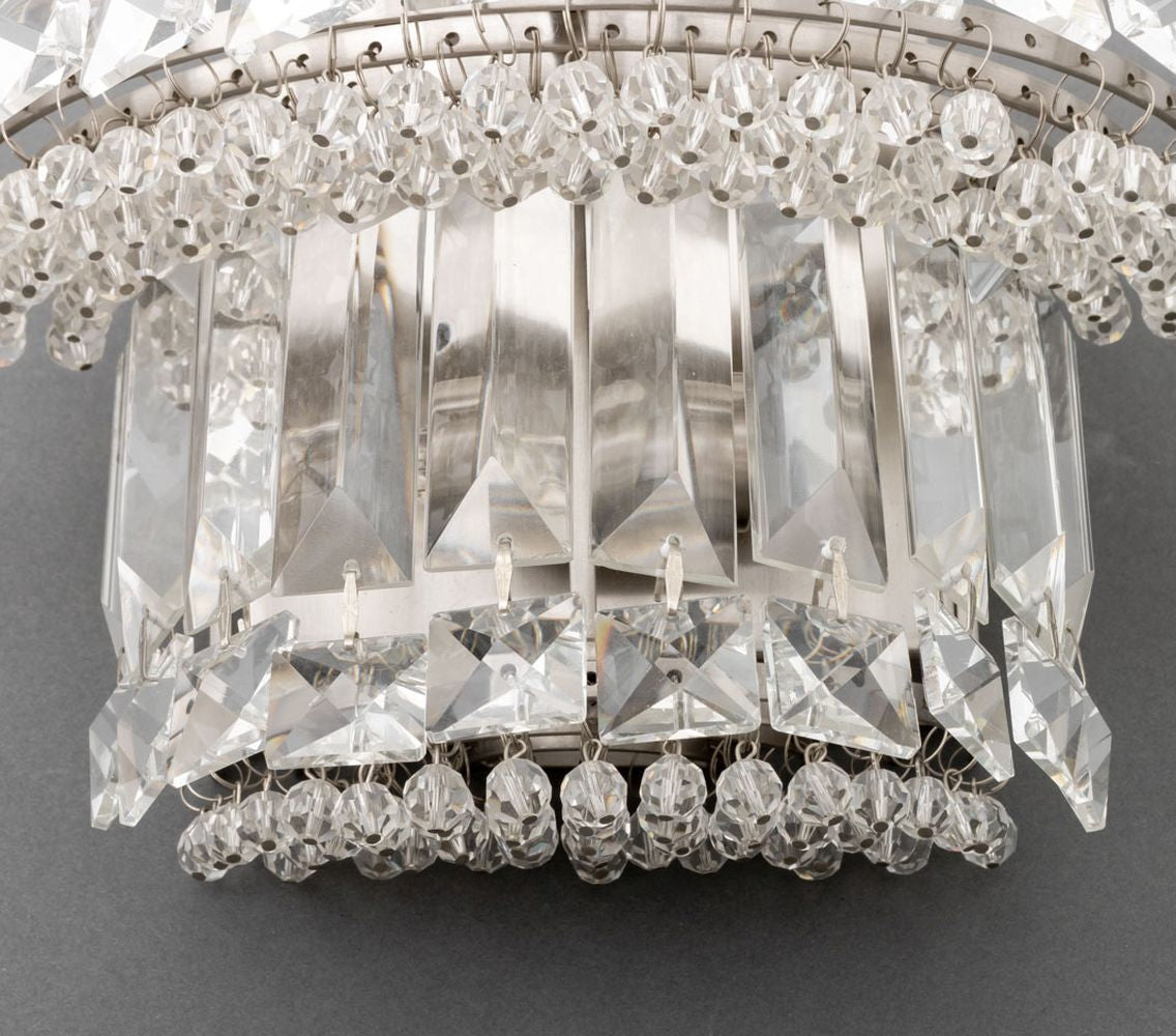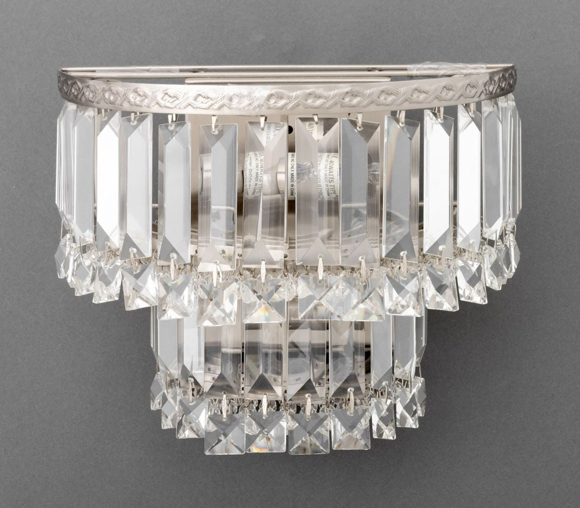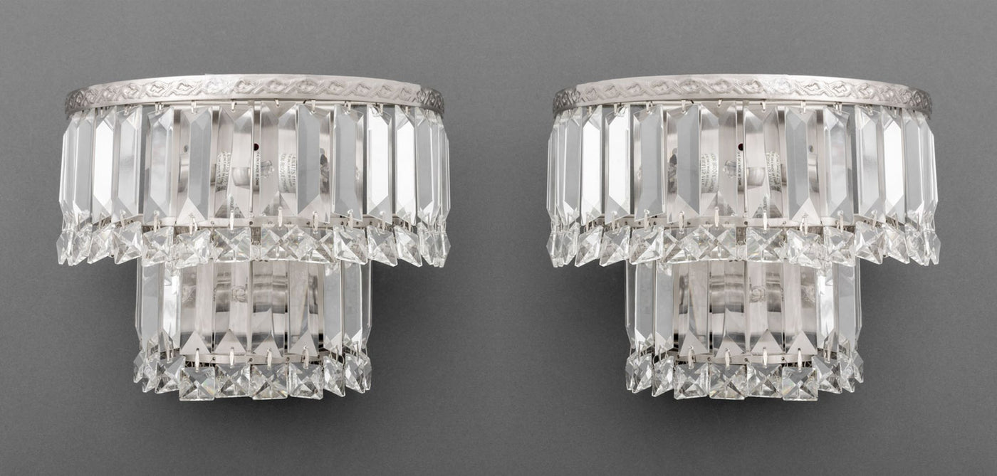 Chrome and Crystal Two-Tier Wall Sconces, Pair