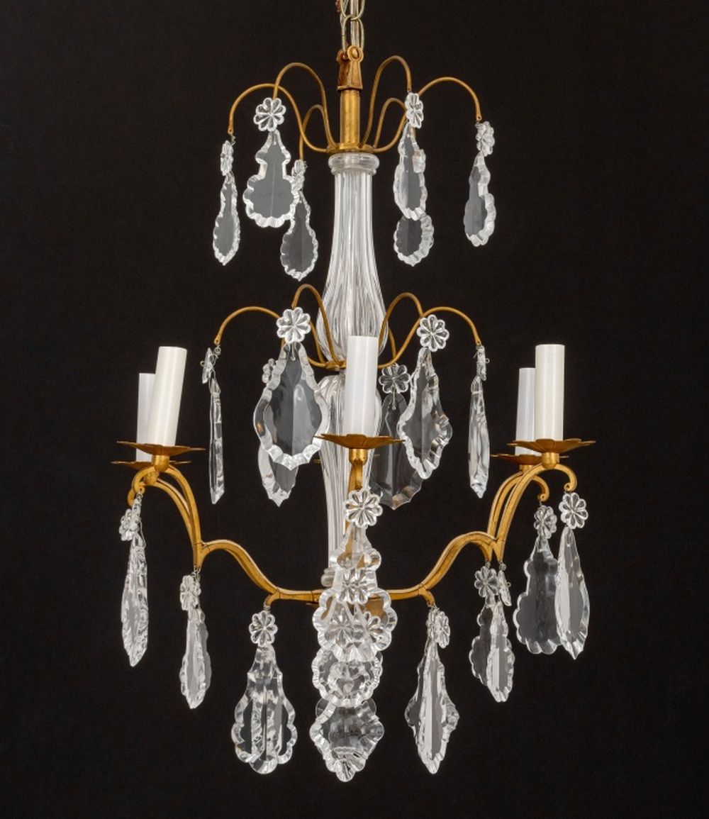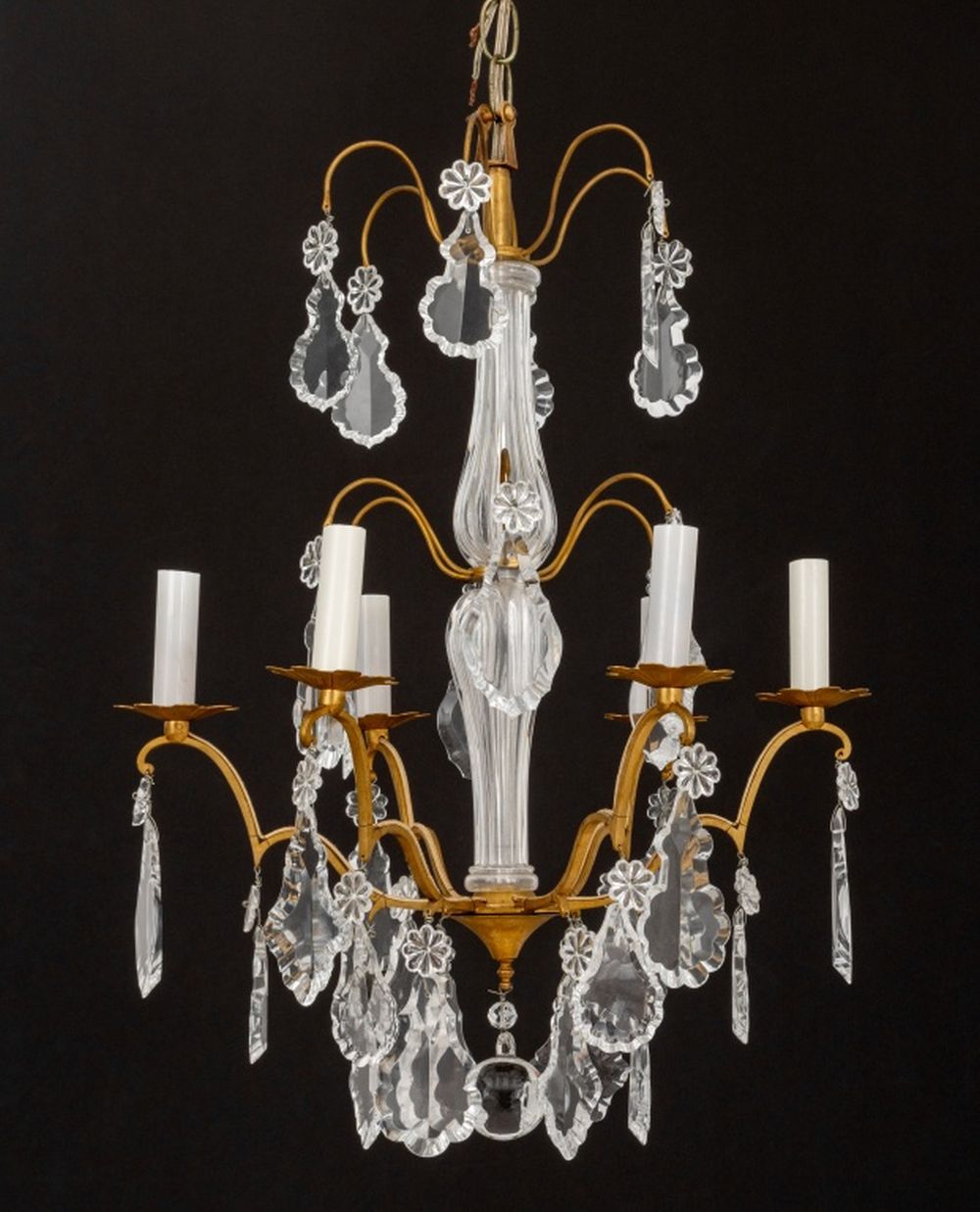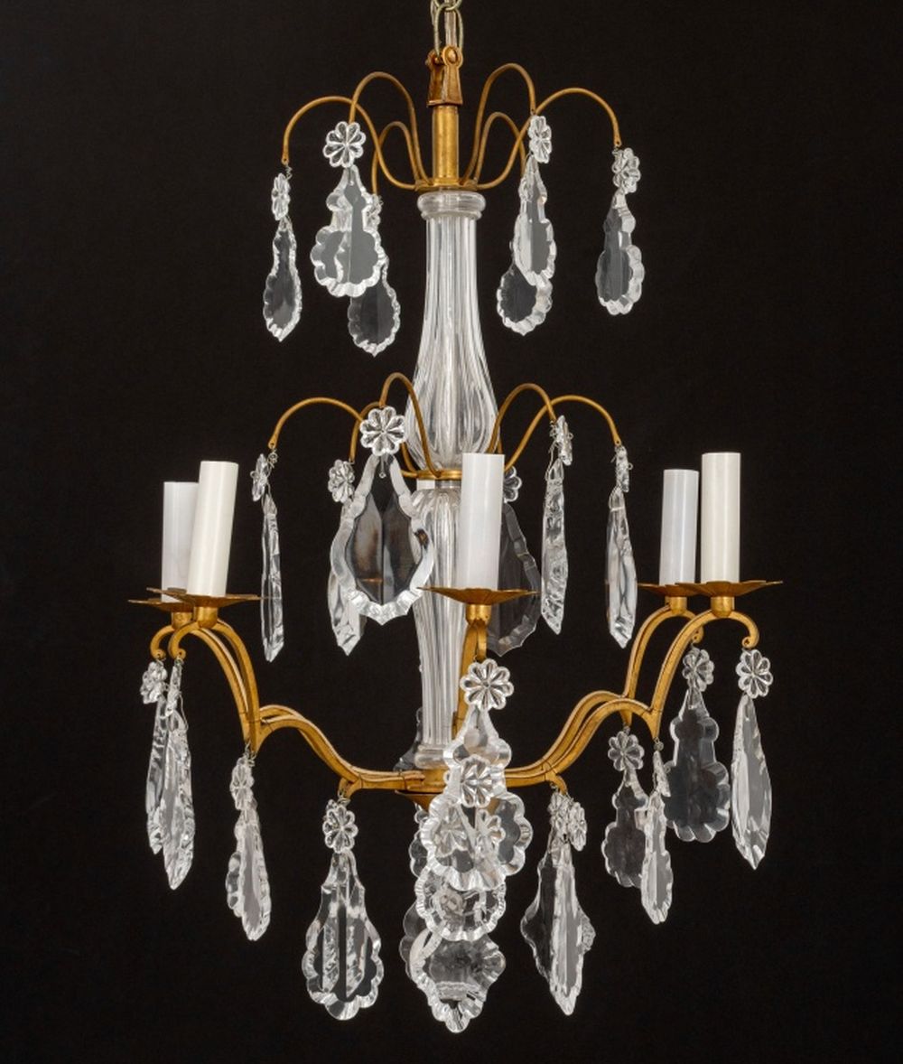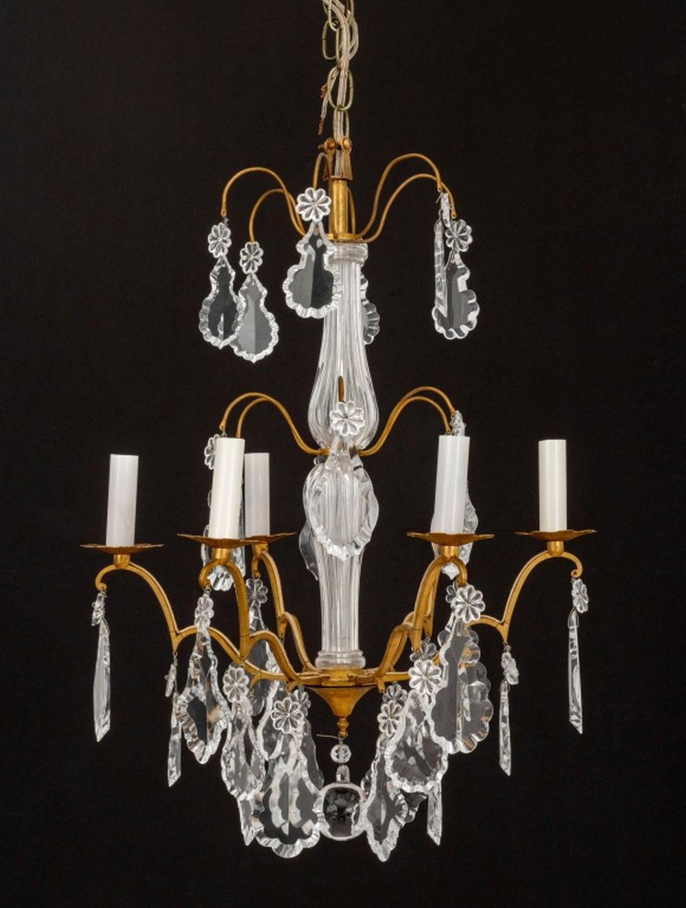 Italian Gilt Metal Cut Glass Six-Light Chandelier