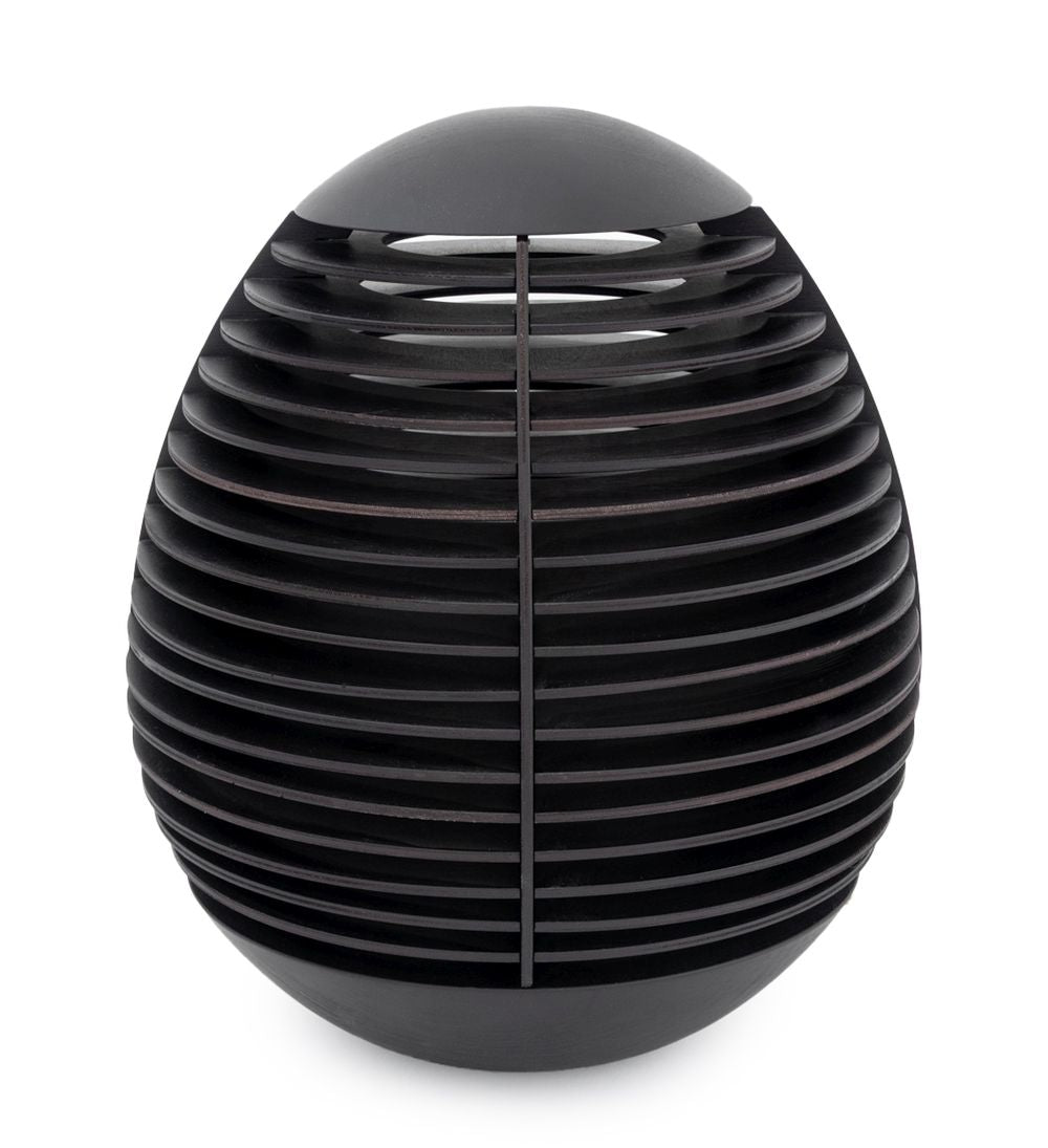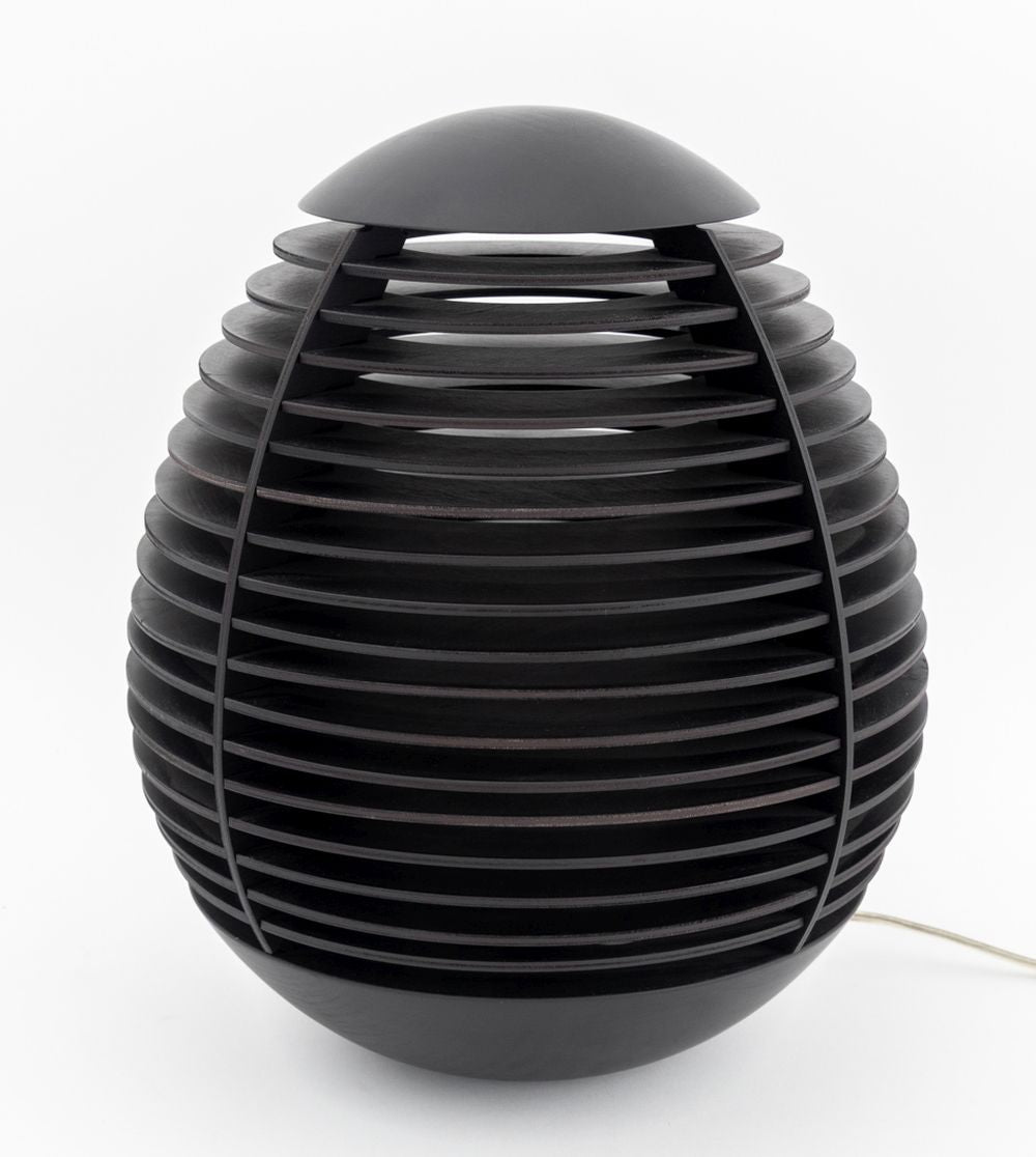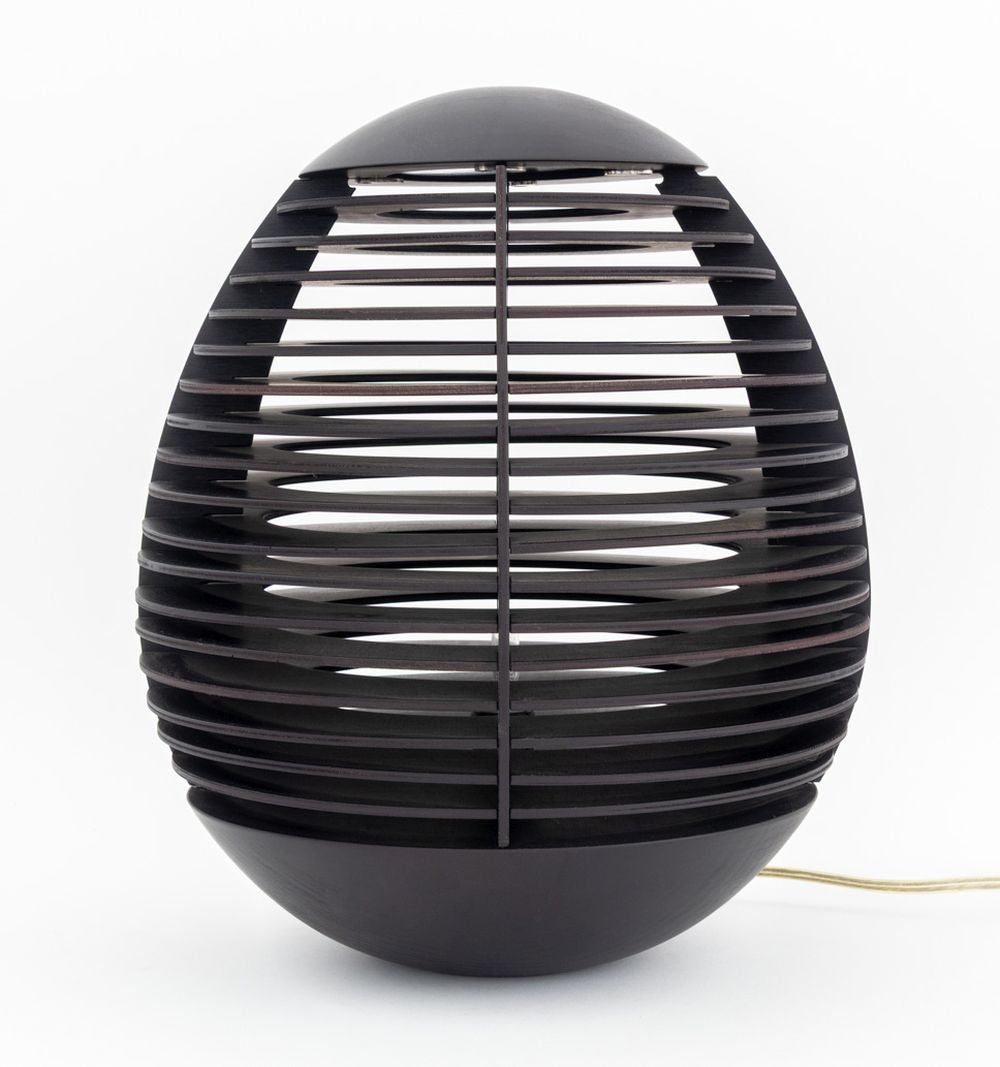 Penta "Tocco" Wood Table Lamp, egg shaped in oak wood with wenge finish. Lacking glass shade. 14" H x 12" Diameter. Provenance: From a New York City Collection. Keywords: Postmodern Design, Minimalist Modern, Decorative Arts, Space Age Style, Lighting, Ambiance Light, Italian Designer