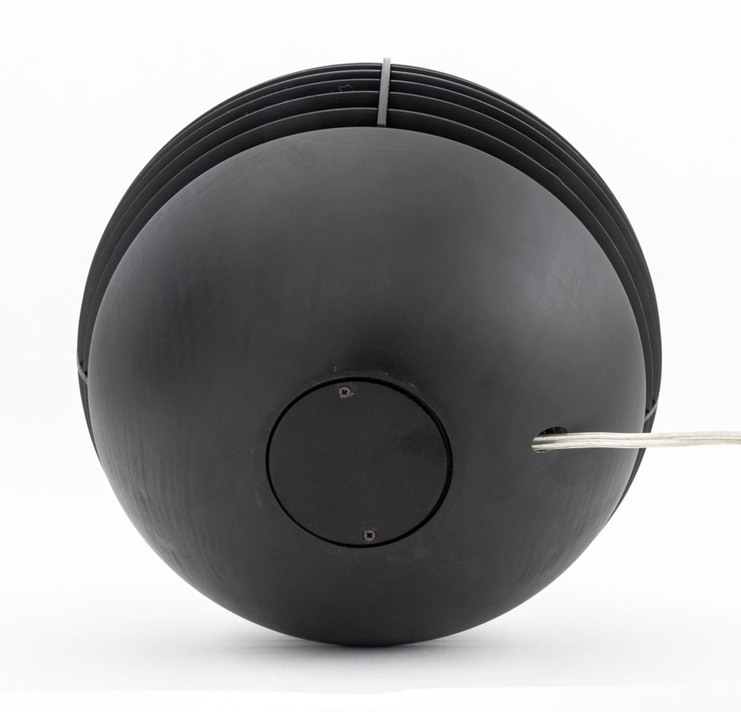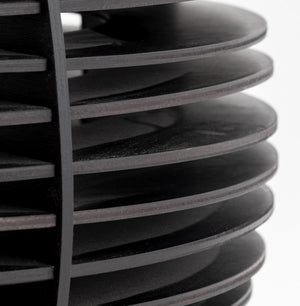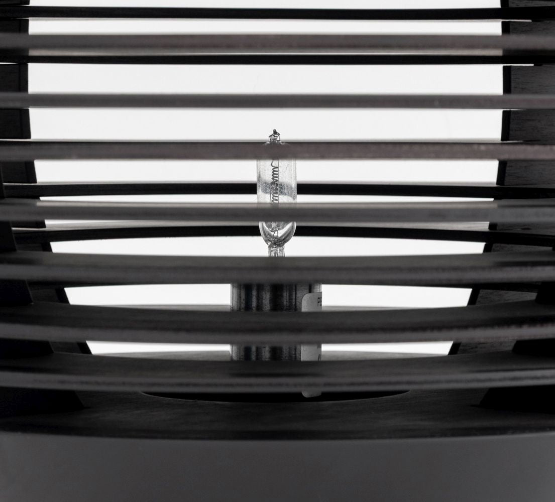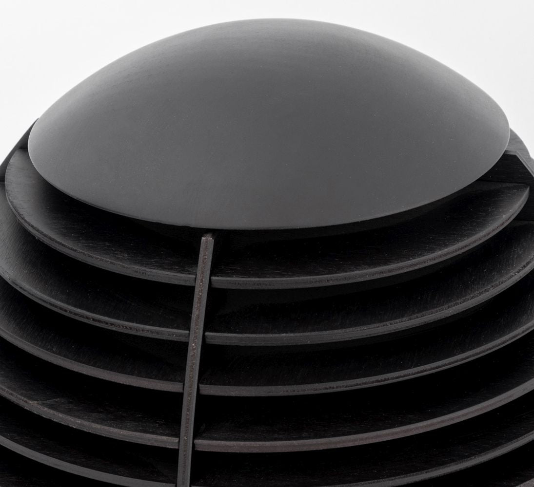 Penta "Tocco" Wood Table Lamp, egg shaped in oak wood with wenge finish. Lacking glass shade. 14" H x 12" Diameter. Provenance: From a New York City Collection. Keywords: Postmodern Design, Minimalist Modern, Decorative Arts, Space Age Style, Lighting, Ambiance Light, Italian Designer
