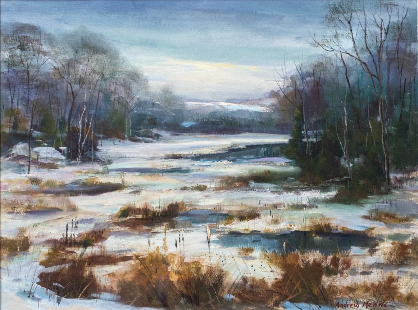Andrew Menna Winter Scene Oil on Canvas