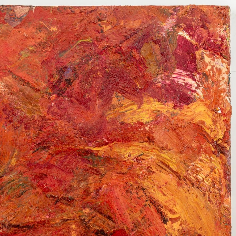 Andy Miller (American, b. 1950), Abstract Composition, Oil on Canvas, impasto details, reds and oranges, with artist's studio stamp to verso, apparently unsigned, unframed. 65" H x 51" W. Provenance: From the Studio of Andy Miller. Keywords: Painting, Abstraction,  Abstract Expressionist, Abstract Expressionism, AbEx, Post War and Contemporary Art, Polychrome, 20th Century School, Circle of Milton Resnick and Pat Passlof