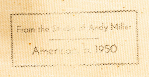 Andy Miller (American, b. 1950), Abstract Composition, Oil on Canvas, impasto details, dark reddish brown with blue and yellow undertones, unsigned, artist's studio stamp to verso, unframed. 12.25" H x 20" W. Provenance: From the Studio of Andy Miller. Keywords: Painting, Works on Canvas, Abstraction, Abstract Expressionist, Abstract Expressionism, AbEx, Post-War and Contemporary Art, Polychrome, 20th Century School, Circle of Milton Resnick and Pat Passlof