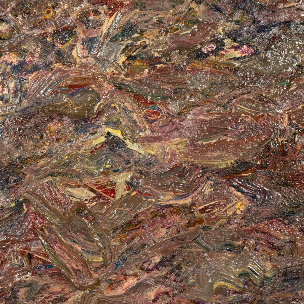 Andy Miller (American, b. 1950), Abstract Composition, Oil on Canvas, impasto details, pink brown with light green and blue hues, unsigned, artist's studio stamp to verso, unframed. 14.25" H x 16.25" W. Provenance: From the Studio of Andy Miller. Keywords: Painting, Works on Canvas, Abstraction, Abstract Expressionist, Abstract Expressionism, AbEx, Post-War and Contemporary Art, Polychrome, 20th Century School, Circle of Milton Resnick and Pat Passlof