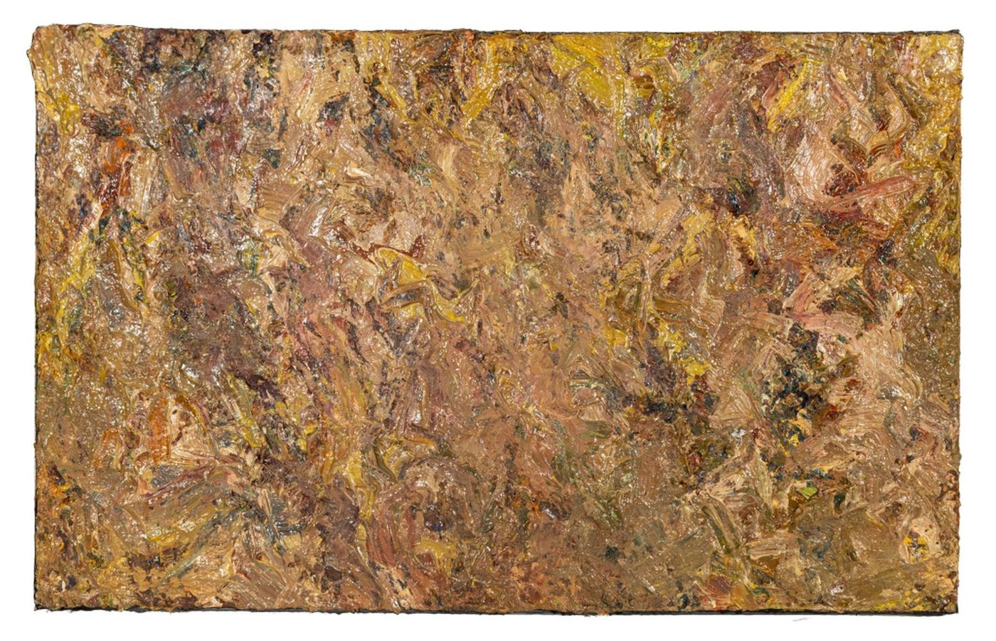 Andy Miller (American, b. 1950), Abstract Composition, Oil on Canvas, impasto details, yellow brown with maroon hues, unsigned, artist's studio stamp to verso, unframed. 10.25" H x 16" W. Provenance: From the Studio of Andy Miller. Keywords: Painting, Works on Canvas, Abstraction, Abstract Expressionist, Abstract Expressionism, AbEx, Post-War and Contemporary Art, Polychrome, 20th Century School, Circle of Milton Resnick and Pat Passlof
