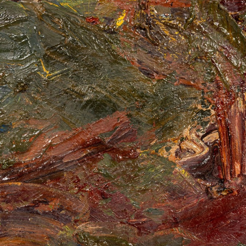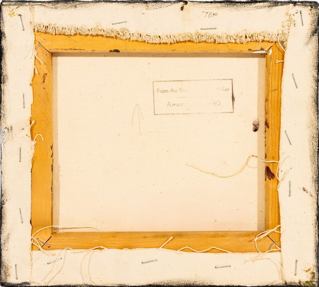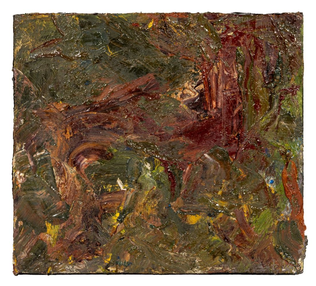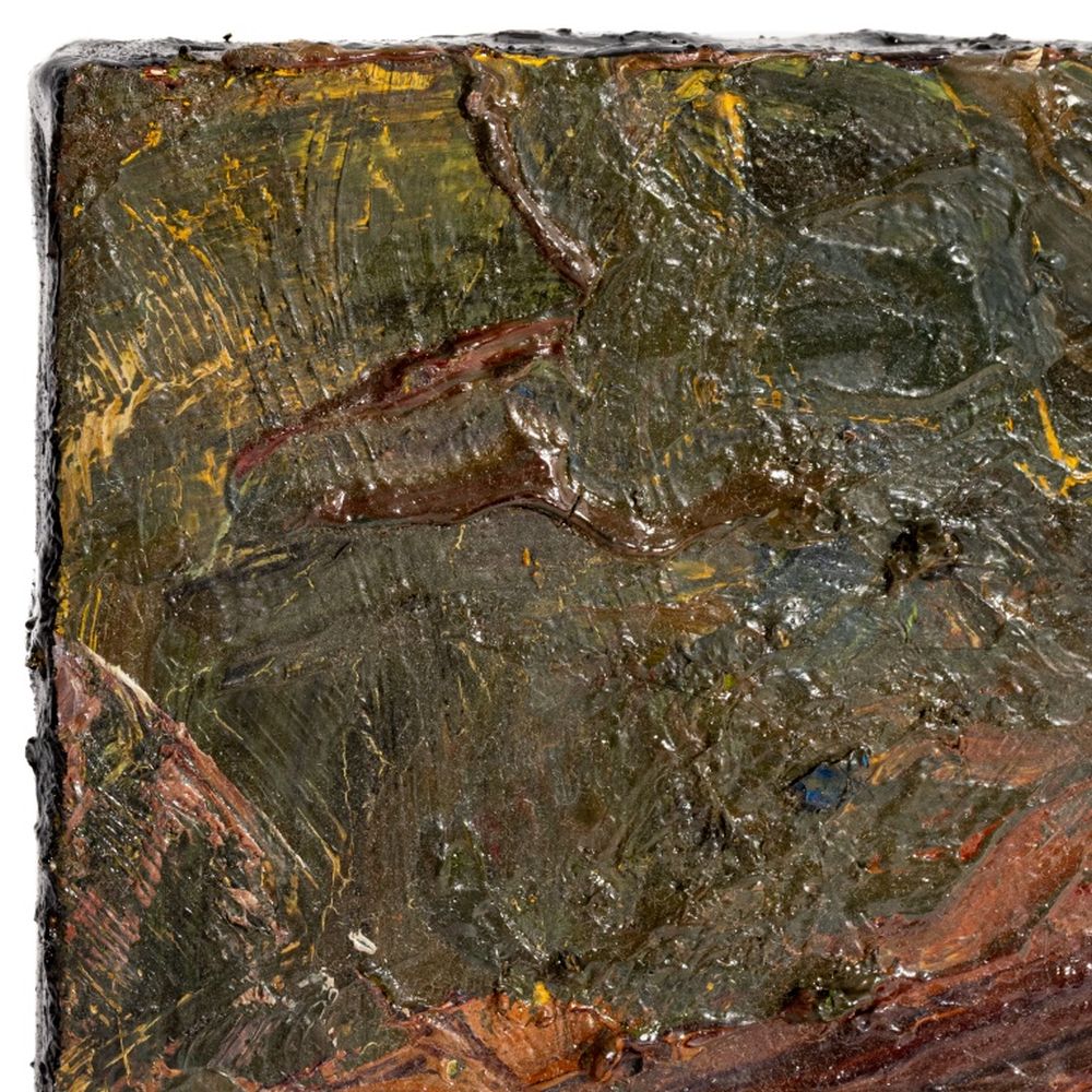 Andy Miller (American, b. 1950), Abstract Composition, Oil on Canvas, impasto details, green brown with cool red hues, unsigned, artist's studio stamp to verso, unframed. 9" H x 10" W. Provenance: From the Studio of Andy Miller. Keywords: Painting, Works on Canvas, Abstraction, Abstract Expressionist, Abstract Expressionism, AbEx, Post-War and Contemporary Art, Polychrome, 20th Century School, Circle of Milton Resnick and Pat Passlof