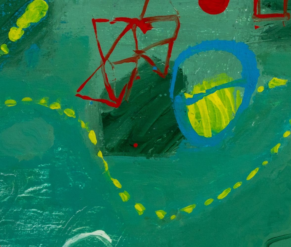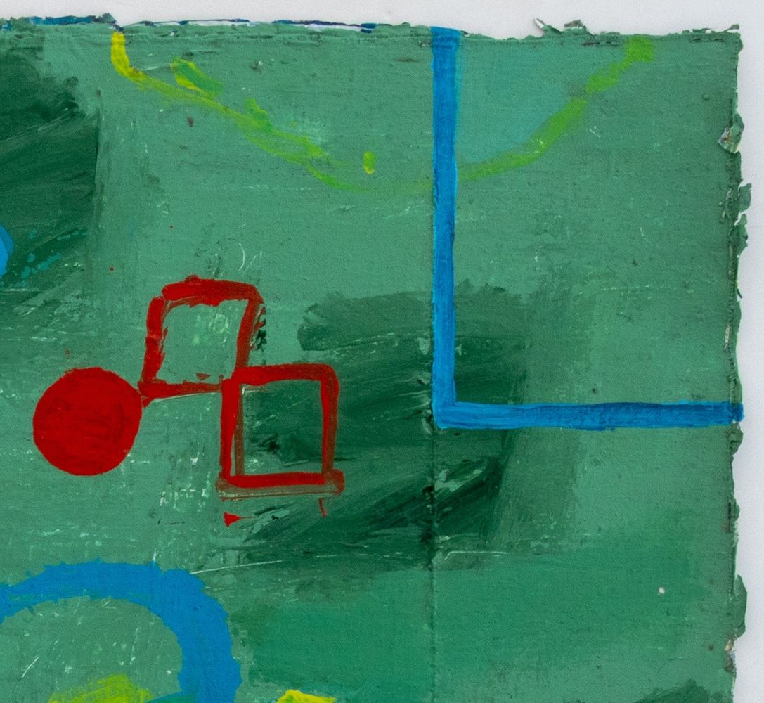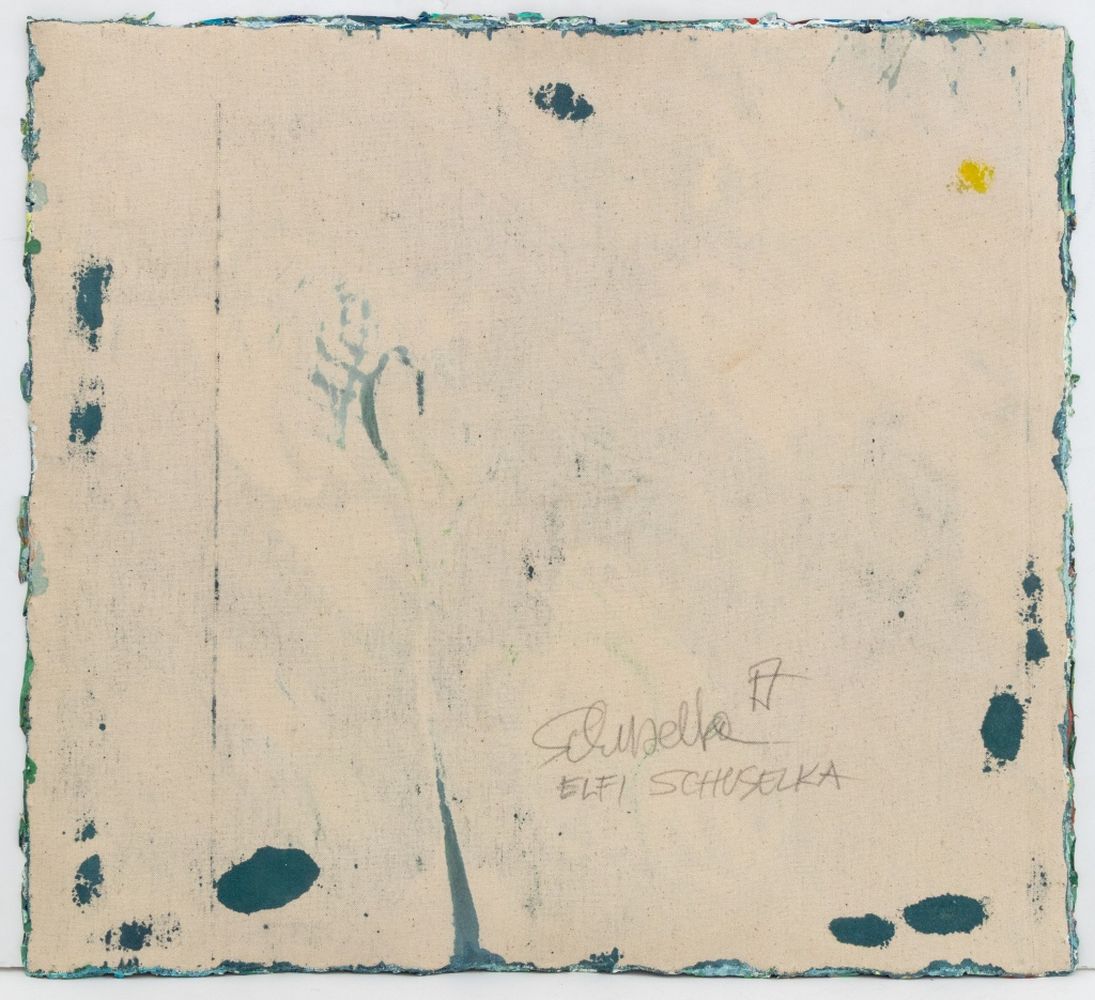 Elfi Schuselka (Austrian, b. 1940), Abstract Composition in Green, Oil on Canvas, signed to verso, unstretched, unframed. 21.5" H x 23.5" W. Provenance: From the collection of the artist. Note: Schuselka studied photography, art history, and theater at the University of Vienna. She moved to New York in 1964. Her work has been exhibited internationally in the United States, Italy, France, and Japan, as well as at the Cracovia Biennial, Yugoslavia, Ibiza Biennial, Spain, and the Sao Paulo Biennial. Her work is part of the permanent collections of the Museum of Modern Art (MoMA), New York, the Amon Carter Museum of American Art, Fort Worth, and the International Centre of Graphic Arts, Slovenia. Long a regular exhibitor at the famed 55 Mercer Gallery, Schuselka is well-known in New York art circles together with her husband, Domenick Capobianco (American, b. 1928). Keywords: Paintings, Oil Paintings, Works on Canvas, Impasto, Texture, Abstraction, Polychrome, Geometric, Patterns, Abstract Expressionist, Expressionism, AbEx, Women Artists, Contemporary Art