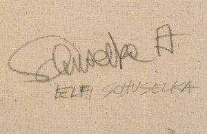 Elfi Schuselka (Austrian, b. 1940), Abstract Composition, Oil on Canvas, signed to verso, unstretched, unframed. 21.5" H x 23.5" W. Provenance: From the collection of the artist. Note: Schuselka studied photography, art history, and theater at the University of Vienna. She moved to New York in 1964. Her work has been exhibited internationally in the United States, Italy, France, and Japan, as well as at the Cracovia Biennial, Yugoslavia, Ibiza Biennial, Spain, and the Sao Paulo Biennial. Her work is part of the permanent collections of the Museum of Modern Art (MoMA), New York, the Amon Carter Museum of American Art, Fort Worth, and the International Centre of Graphic Arts, Slovenia. Long a regular exhibitor at the famed 55 Mercer Gallery, Schuselka is well-known in New York art circles together with her husband, Domenick Capobianco (American, b. 1928). Keywords: Paintings, Oil Paintings, Works on Canvas, Impasto, Texture, Abstraction, Polychrome, Geometric, Patterns, Abstract Expressionist, Expressionism, AbEx, Women Artists, Contemporary Art
