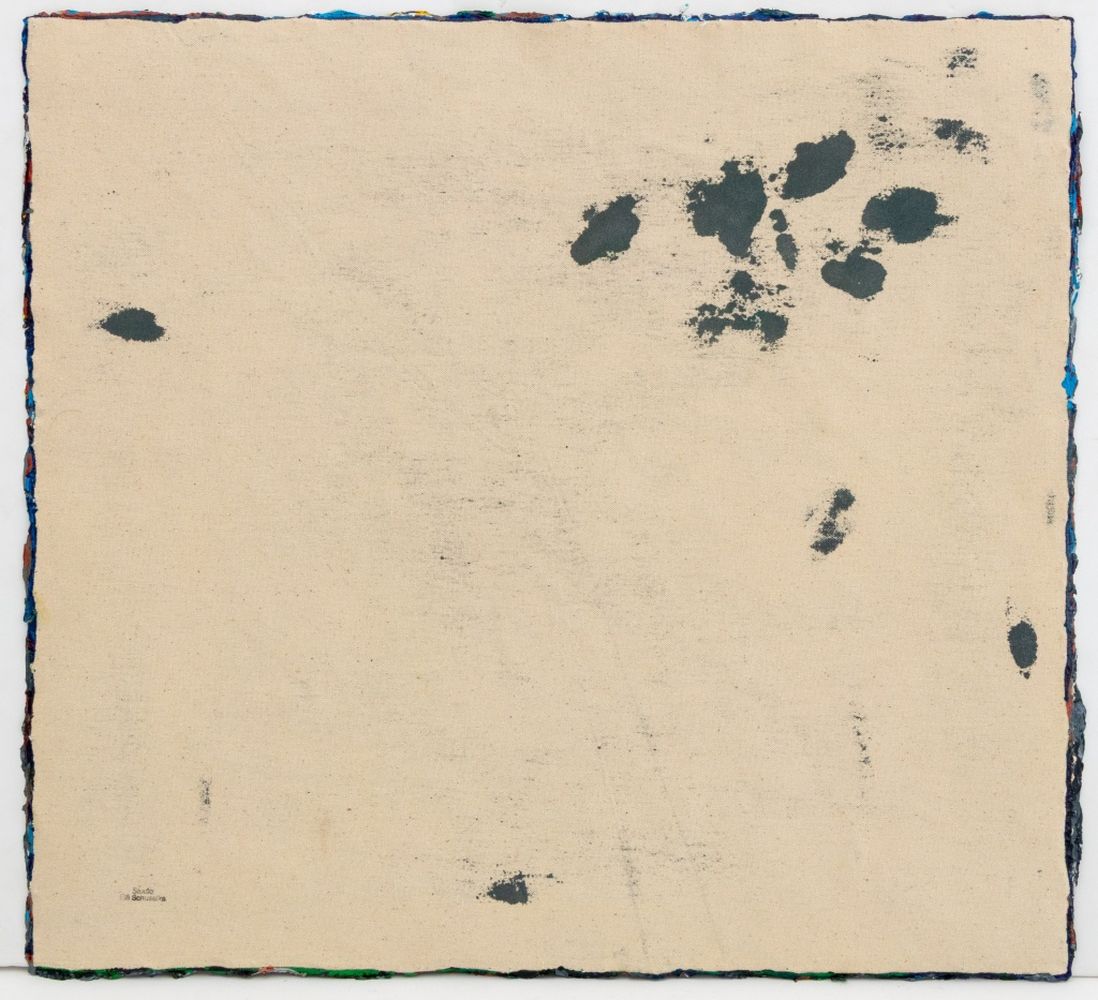 Elfi Schuselka (Austrian, b. 1940), Abstract Composition, Oil on Canvas, apparently unsigned, stamped "Studio Elfi Schuselka" to verso, unstetched, unframed. 21.5" H x 23.5" W. Provenance: From the collection of the artist. Note: Schuselka studied photography, art history, and theater at the University of Vienna. She moved to New York in 1964. Her work has been exhibited internationally in the United States, Italy, France, and Japan, as well as at the Cracovia Biennial, Yugoslavia, Ibiza Biennial, Spain, and the Sao Paulo Biennial. Her work is part of the permanent collections of the Museum of Modern Art (MoMA), New York, the Amon Carter Museum of American Art, Fort Worth, and the International Centre of Graphic Arts, Slovenia. Long a regular exhibitor at the famed 55 Mercer Gallery, Schuselka is well-known in New York art circles together with her husband, Domenick Capobianco (American, b. 1928). Keywords: Paintings, Oil Paintings, Works on Canvas, Impasto, Texture, Abstraction, Polychrome, Geometric, Patterns, Abstract Expressionist, Expressionism, AbEx, Women Artists, Contemporary Art
