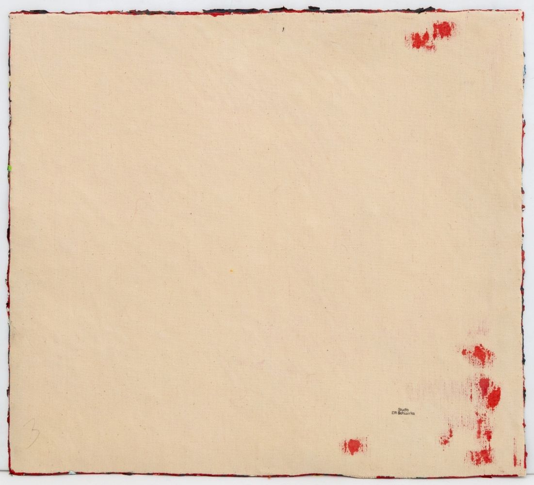 Elfi Schuselka (Austrian, b. 1940), Abstract Composition, Oil on Canvas, apparently unsigned, stamped "Studio Elfi Schuselka" to verso, unstetched, unframed. 21.5" H x 23.5" W. Provenance: From the collection of the artist. Note: Schuselka studied photography, art history, and theater at the University of Vienna. She moved to New York in 1964. Her work has been exhibited internationally in the United States, Italy, France, and Japan, as well as at the Cracovia Biennial, Yugoslavia, Ibiza Biennial, Spain, and the Sao Paulo Biennial. Her work is part of the permanent collections of the Museum of Modern Art (MoMA), New York, the Amon Carter Museum of American Art, Fort Worth, and the International Centre of Graphic Arts, Slovenia. Long a regular exhibitor at the famed 55 Mercer Gallery, Schuselka is well-known in New York art circles together with her husband, Domenick Capobianco (American, b. 1928). Keywords: Paintings, Oil Paintings, Works on Canvas, Impasto, Texture, Abstraction, Polychrome, Geometric, Patterns, Abstract Expressionist, Expressionism, AbEx, Women Artists, Contemporary Art