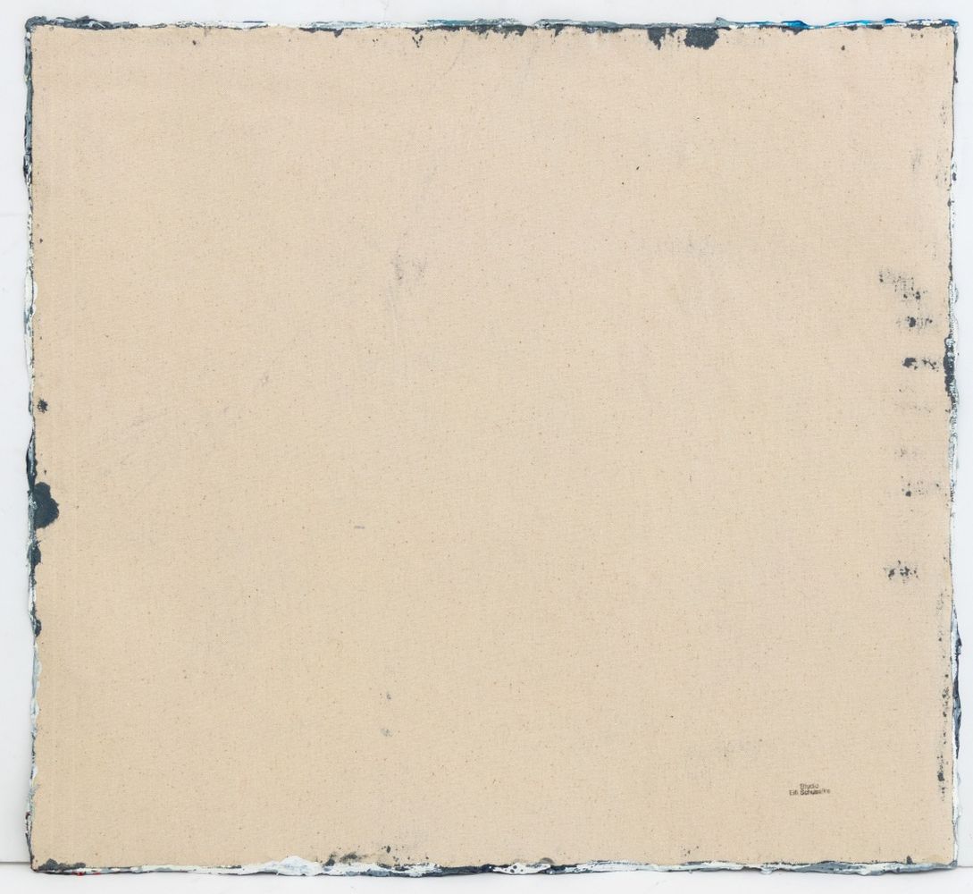 Elfi Schuselka (Austrian, b. 1940), Abstract Composition, Oil on Canvas, apparently unsigned, stamped "Studio Elfi Schuselka" to verso, unstetched, unframed. 21.5" H x 23.5" W. Provenance: From the collection of the artist. Note: Schuselka studied photography, art history, and theater at the University of Vienna. She moved to New York in 1964. Her work has been exhibited internationally in the United States, Italy, France, and Japan, as well as at the Cracovia Biennial, Yugoslavia, Ibiza Biennial, Spain, and the Sao Paulo Biennial. Her work is part of the permanent collections of the Museum of Modern Art (MoMA), New York, the Amon Carter Museum of American Art, Fort Worth, and the International Centre of Graphic Arts, Slovenia. Long a regular exhibitor at the famed 55 Mercer Gallery, Schuselka is well-known in New York art circles together with her husband, Domenick Capobianco (American, b. 1928). Keywords: Paintings, Oil Paintings, Works on Canvas, Impasto, Texture, Abstraction, Polychrome, Geometric, Patterns, Abstract Expressionist, Expressionism, AbEx, Women Artists, Contemporary Art